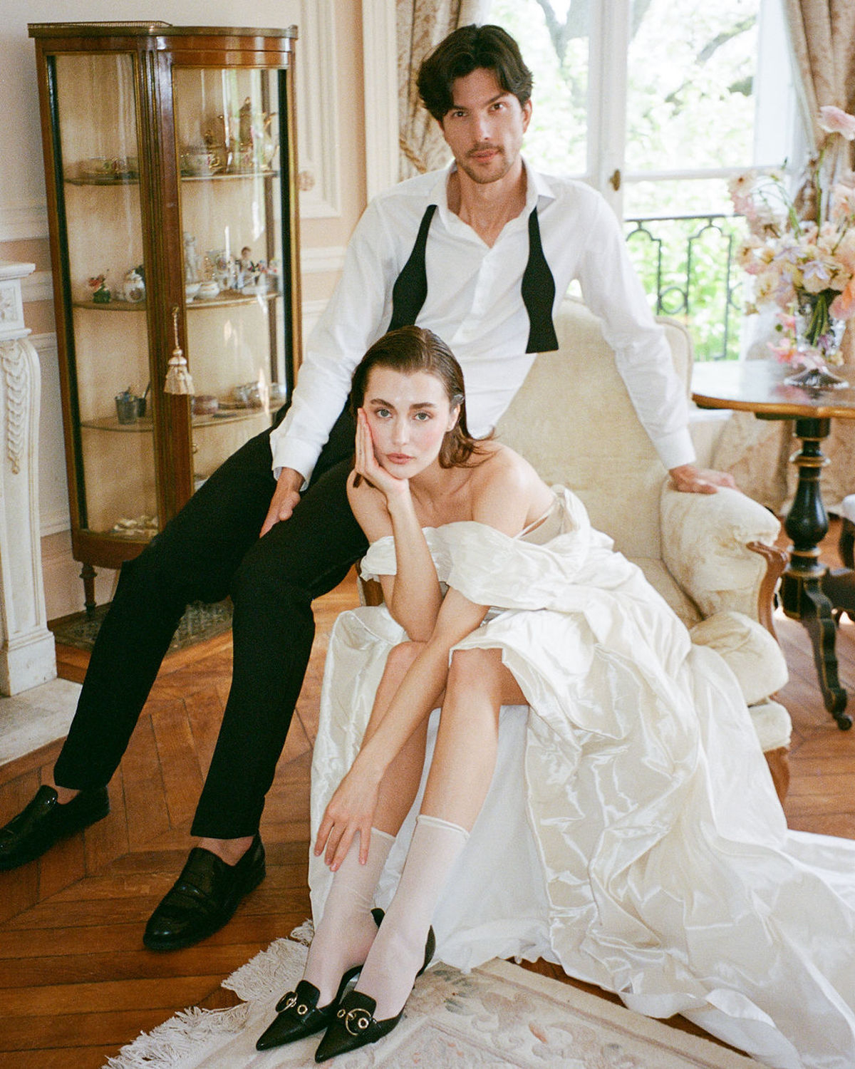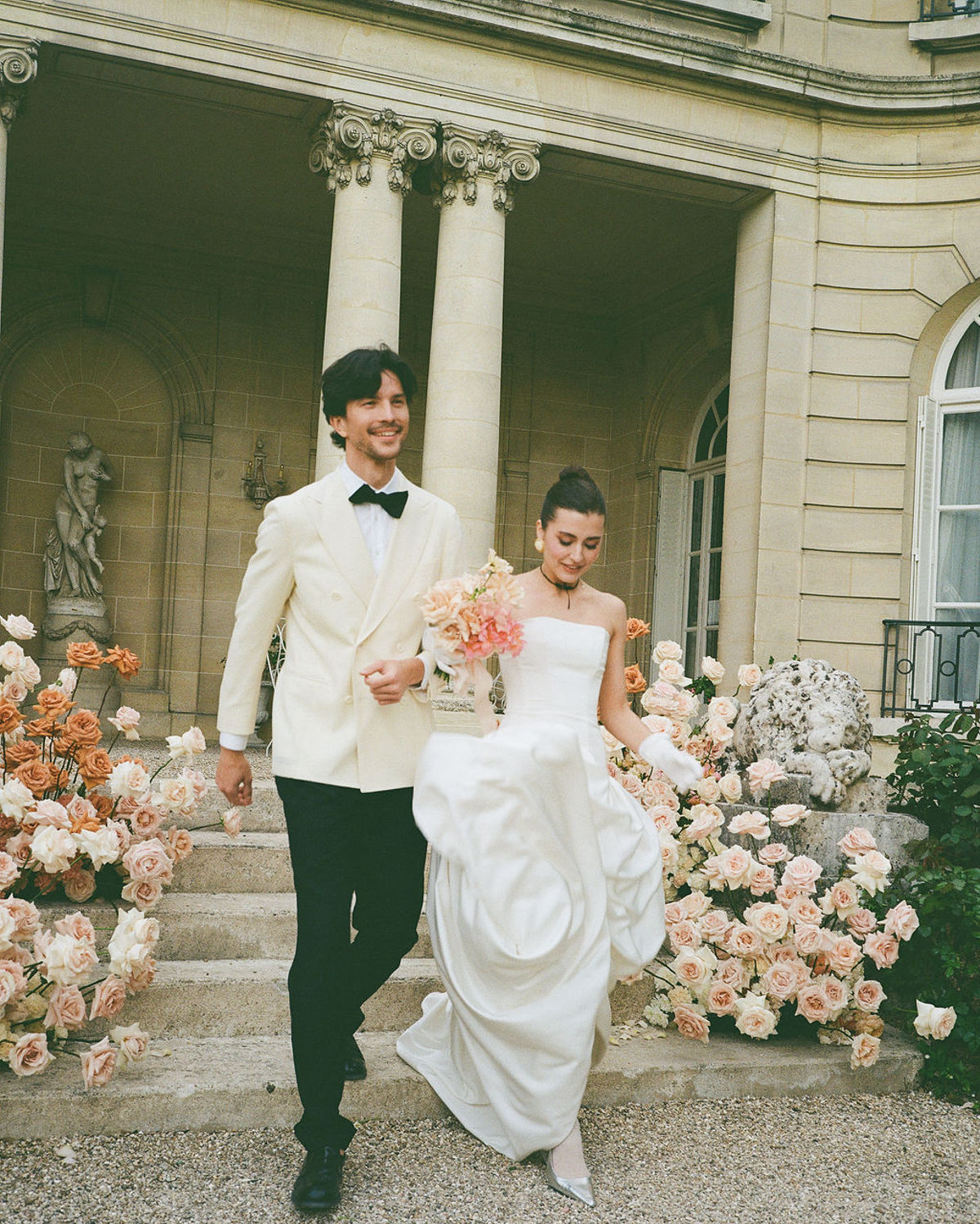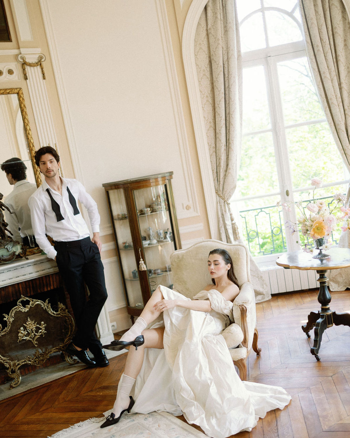 From the couple’s unhurried morning preparations bathed in golden light, to stolen glances in the manicured gardens and laughter shared over champagne, every moment was curated with intention. High-end accessories, thoughtfully curated fashion choices, and delicate floral arrangements elevated the visual story, while the château’s serene ambiance grounded it all in warm authenticity. A quiet rebellion against the noise of grand weddings, this editorial offers a glimpse of what eloping in France might truly feel like: intimate, elegant, and deeply personal.