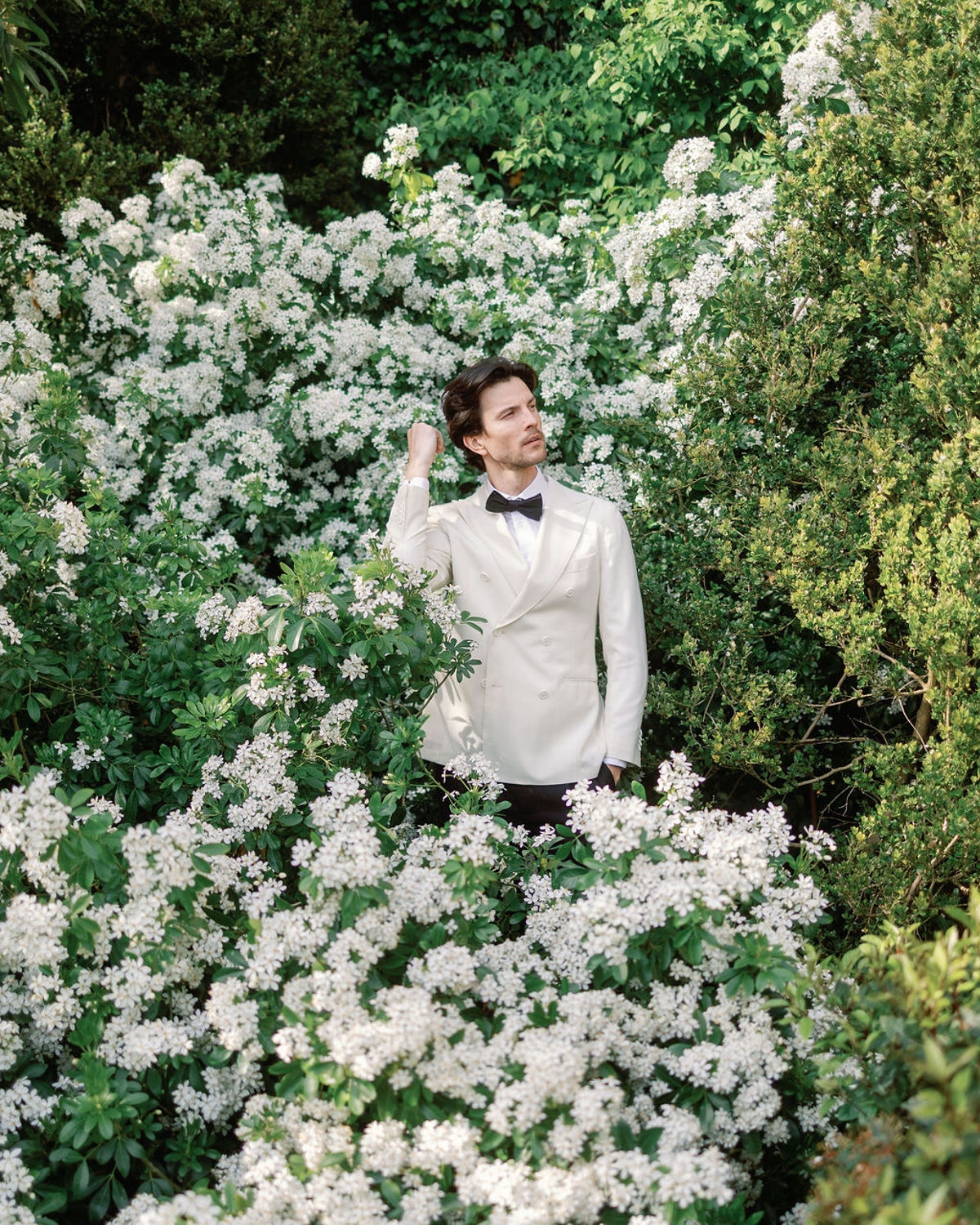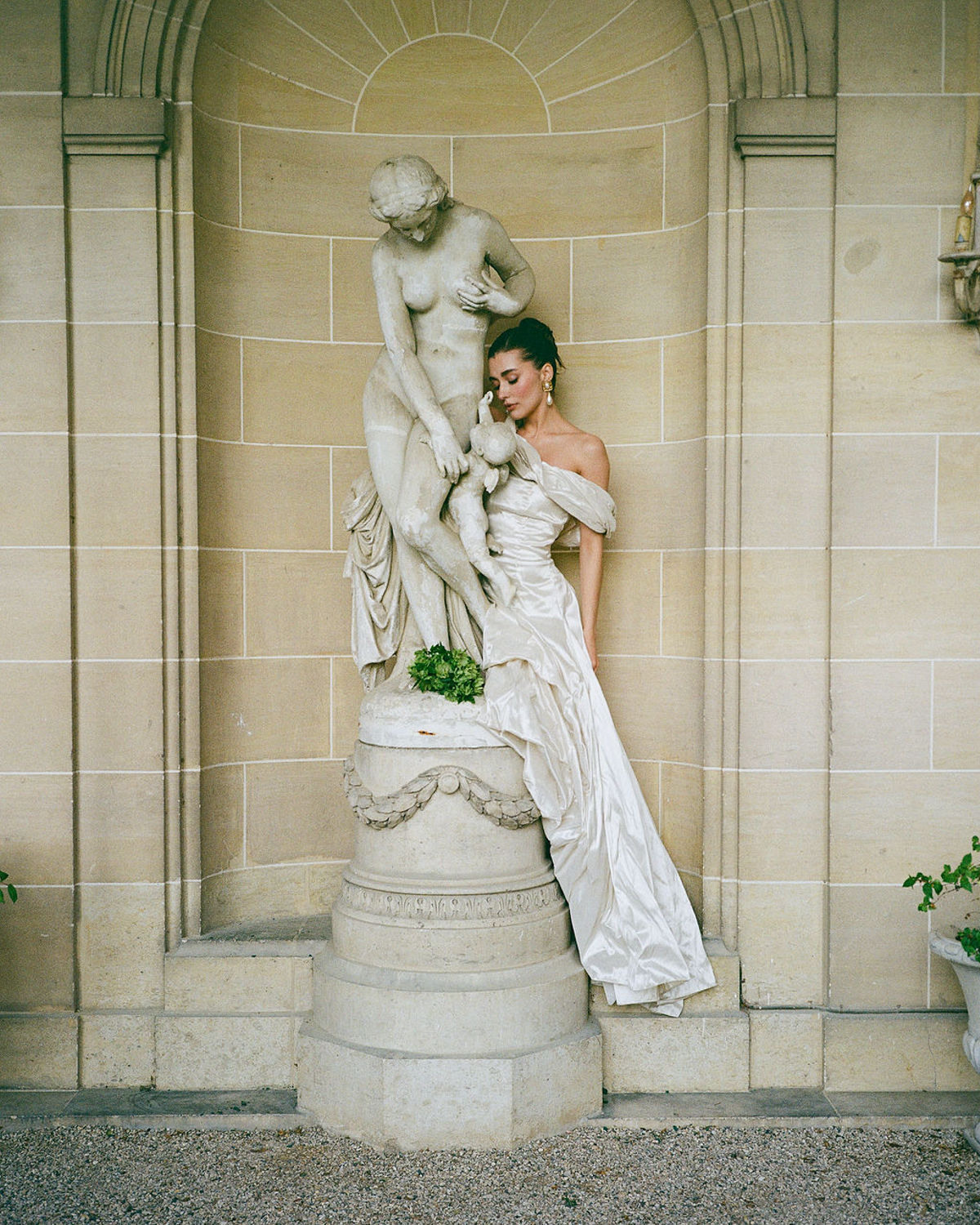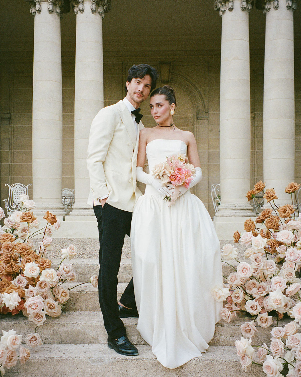 From the couple’s unhurried morning preparations bathed in golden light, to stolen glances in the manicured gardens and laughter shared over champagne, every moment was curated with intention. High-end accessories, thoughtfully curated fashion choices, and delicate floral arrangements elevated the visual story, while the château’s serene ambiance grounded it all in warm authenticity. A quiet rebellion against the noise of grand weddings, this editorial offers a glimpse of what eloping in France might truly feel like: intimate, elegant, and deeply personal.