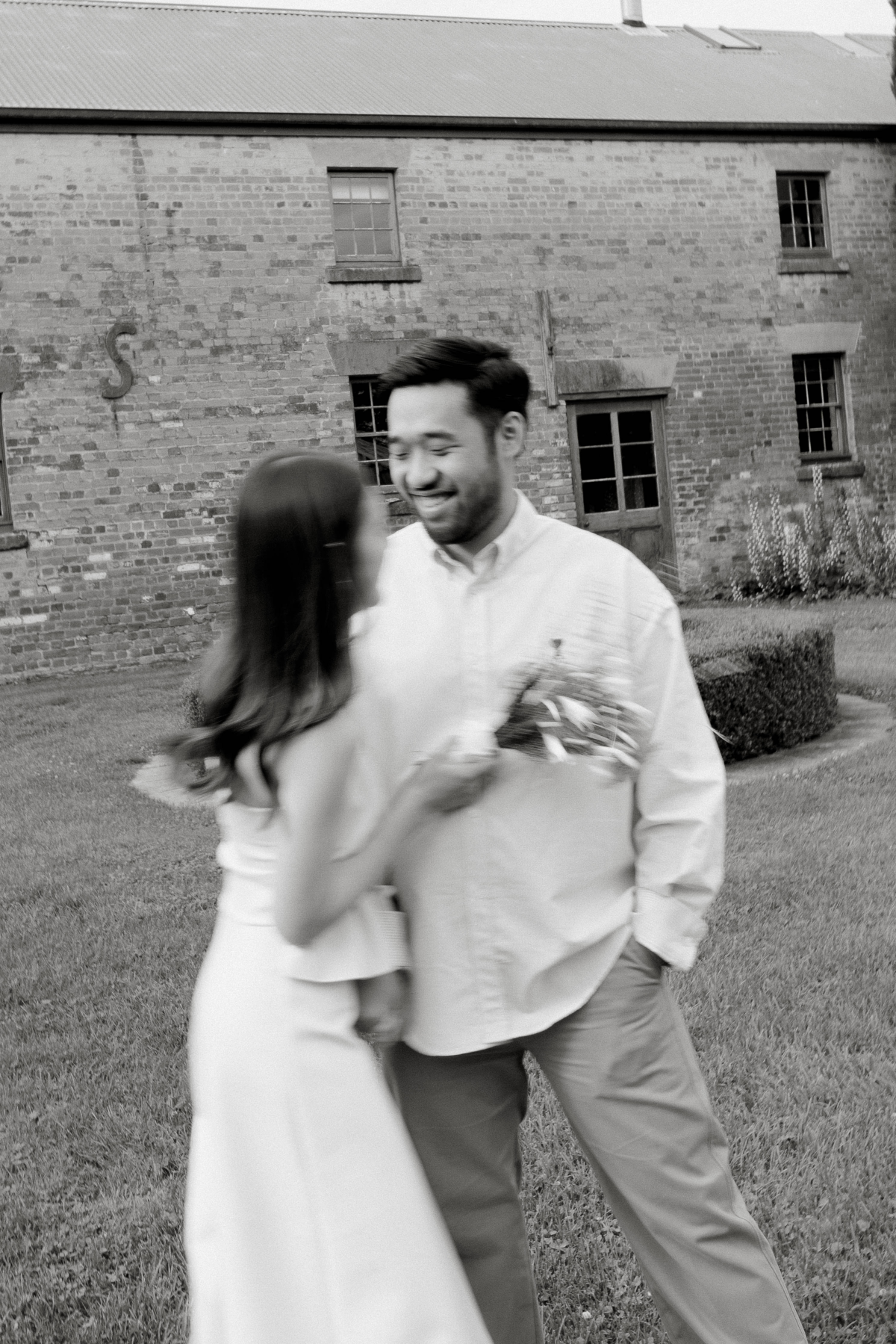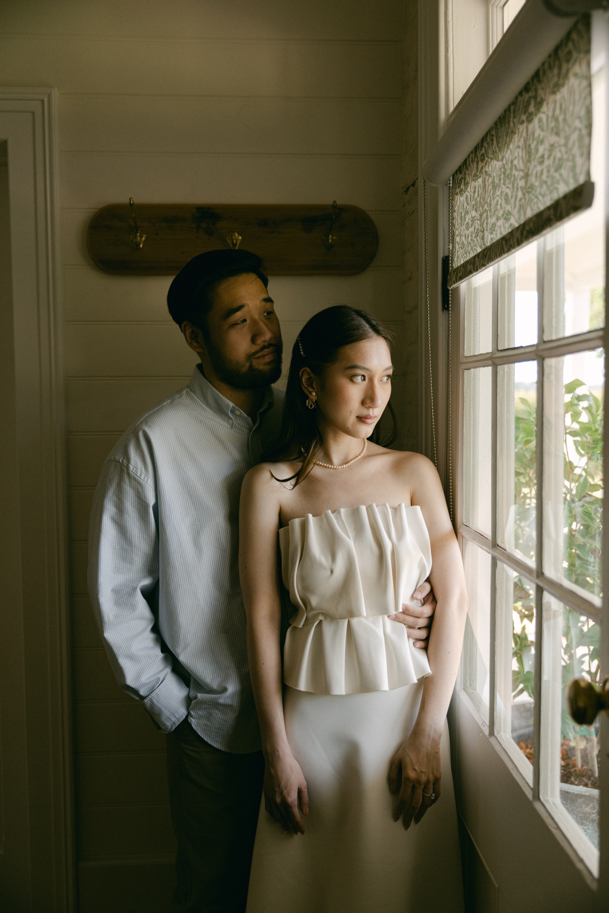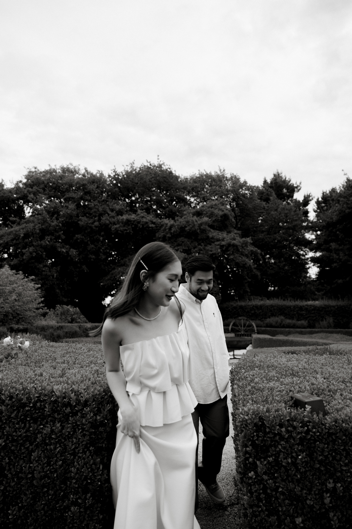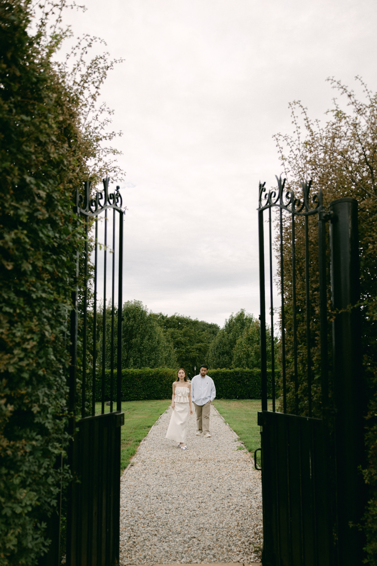 Timeless sandstone houses, fields of fragrant lavender, boundless meadows, and charming ambiance – the setting for Uyen & Phi's magical engagement shoot captured by THE WED member Renee Green. Set on a sprawling Tasmanian estate, The Granary evokes all the poetic charm of the South of France — a place dear to the bride's heart. Intimate and deeply personal, the shoot embraced the tender moments shared by two souls madly in love. The couple chose simple yet elegant attire, reflecting their personal styles. Phi's ensemble, an elevated interpretation of his beloved relaxed t-shirt and sneakers look, exuded effortless sophistication, while Uyen's two dresses, each emphasizing texture, silhouette, and form, embodied the essence of a modern, fashion-forward bride.