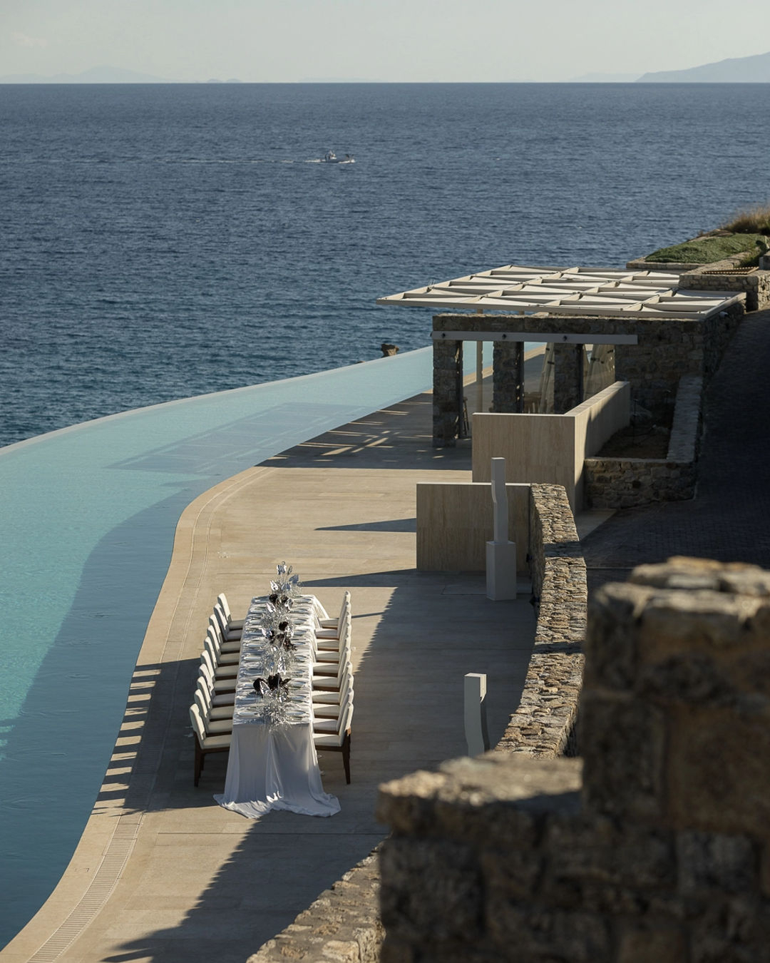 Cali Mykonos is a seaside paradise where natural beauty and discreet luxury coexist on perfect harmony. The beachfront venue combines minimalist architecture, a stunning pool area, and panoramic sea views, offering a sophisticated and stylish atmosphere. Bathed in Cycladic splendor, Cali Mykonos makes a breathtaking backdrop for celebrating life's biggest moments.