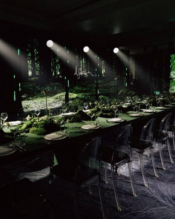 Whether you opt for oversized, cascading crystals or modern, sculptural pieces that second as a work of art, chandeliers instantly add elegance to your space. When treating them as installations—clustered together in unique formations or designed with unexpected materials—they can be as much a conversation piece as they are a light source. Suspending them in outdoor settings brings an elegant contrast to the natural surroundings, enhancing the immersive experience.