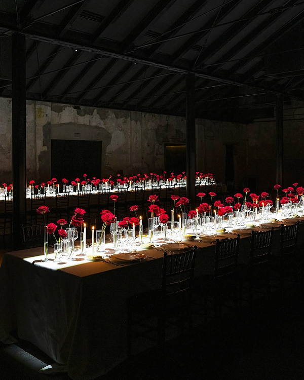 Few things rival the romance of candlelight. Elevate the effect by layering copious amounts of candlelight in various heights—floating candles suspended from above, pillar candles running down long tables, and candelabras dripping with wax for a vintage touch. The movement of the flames cast shadows that add depth and allure to your reception, creating a warm, enchanting glow.