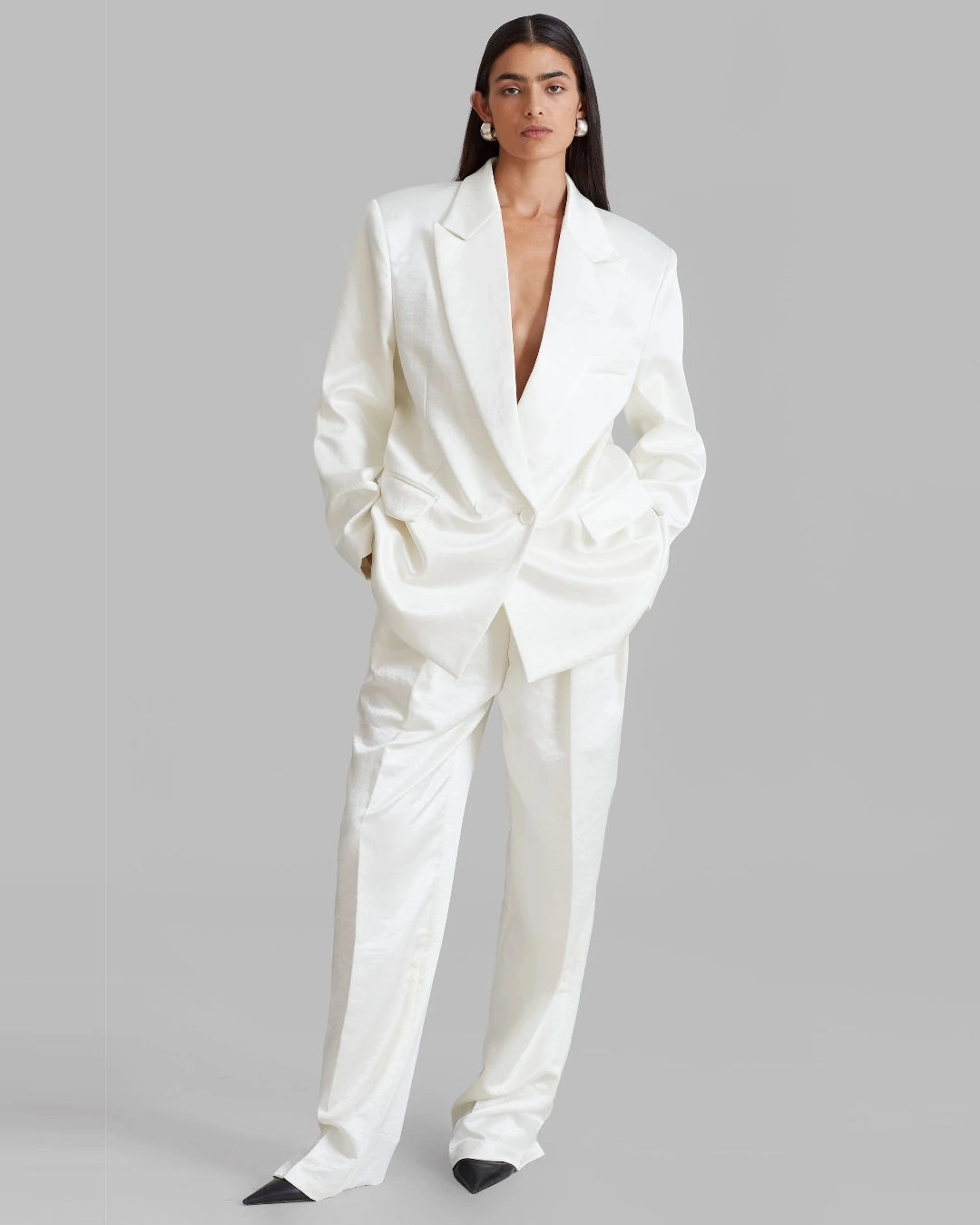 The Frankie Shop Elvira Blazer, $245, and Elvira Pants, $139