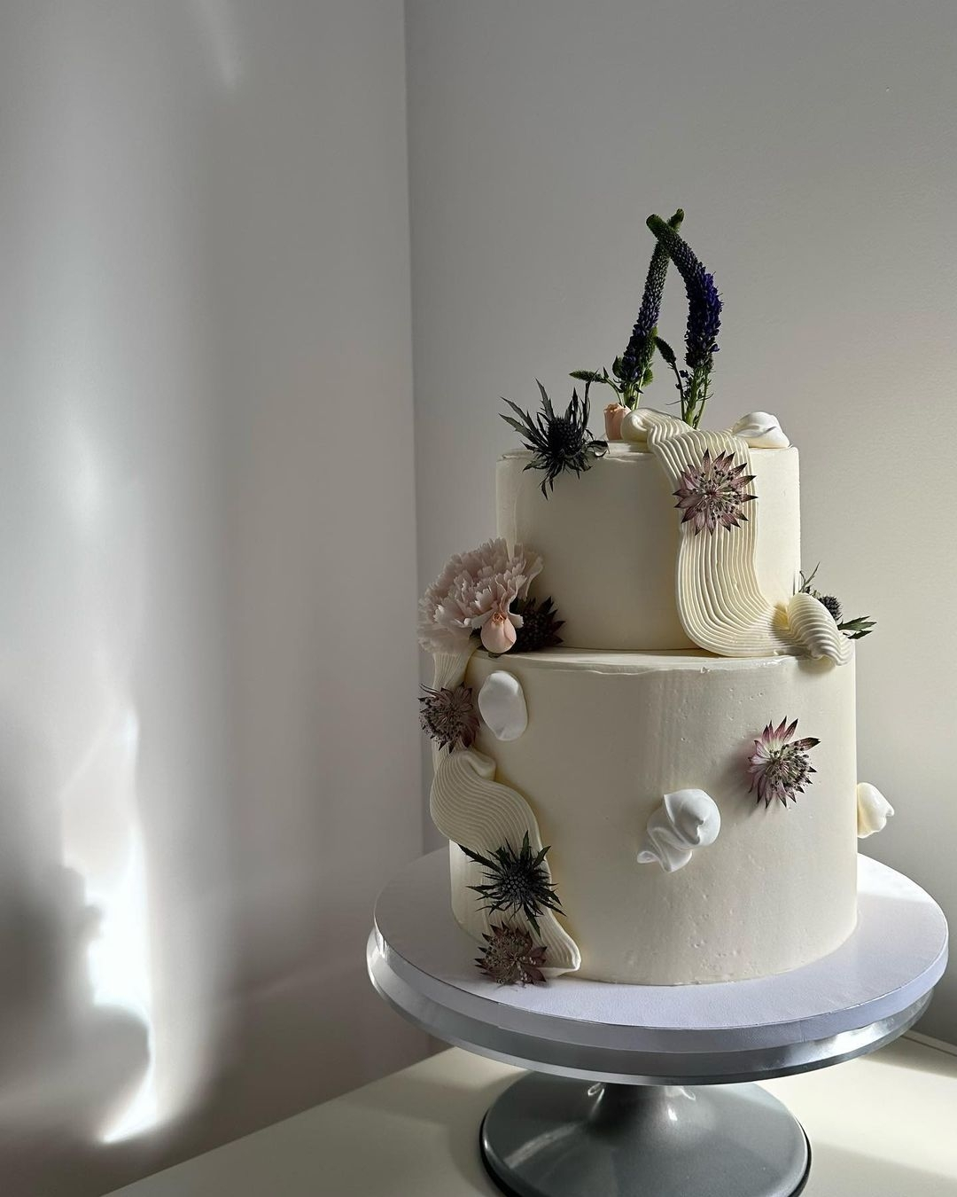 We all have a soft spot for these tiered visions. Buttercream delicately piped and ruffled into ornate formations over multi-levels for a charming, nostalgic appeal. For a playful look fitting of a Marie Antinette banquet, finish with glazed cherries or a touch of pastel. For a more modern appeal, opt for ann abstract shape or imperfectly perfect ruffles.