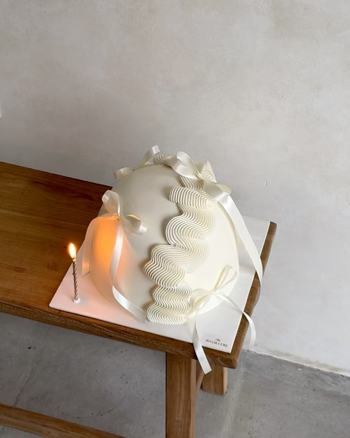 The dome cake, or also known as the beehive cake, is a chic new shape cake artists are exploring. A step away from the traditional tiered cake styles, the dome cake is perfect for intimate weddings due to their smaller serving size. But what they lack in size they make up for in impact. We love when the fondant is minimal in adornment and perfectly smooth to emphasize the sculptural shape, or when coupled with a touch of piped ruffles.