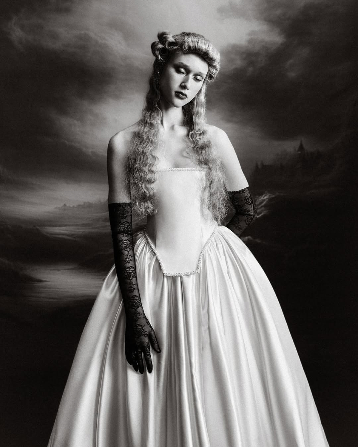 The feminine curves of a basque-waist silhouette pair beautifully with soft, ethereal waves. Worn long and flowing, this style enhances the fairytale quality of your gown. Whether styled with a floral comb, a dainty headband, or nothing at all, the look is soft, dreamy, and utterly romantic.