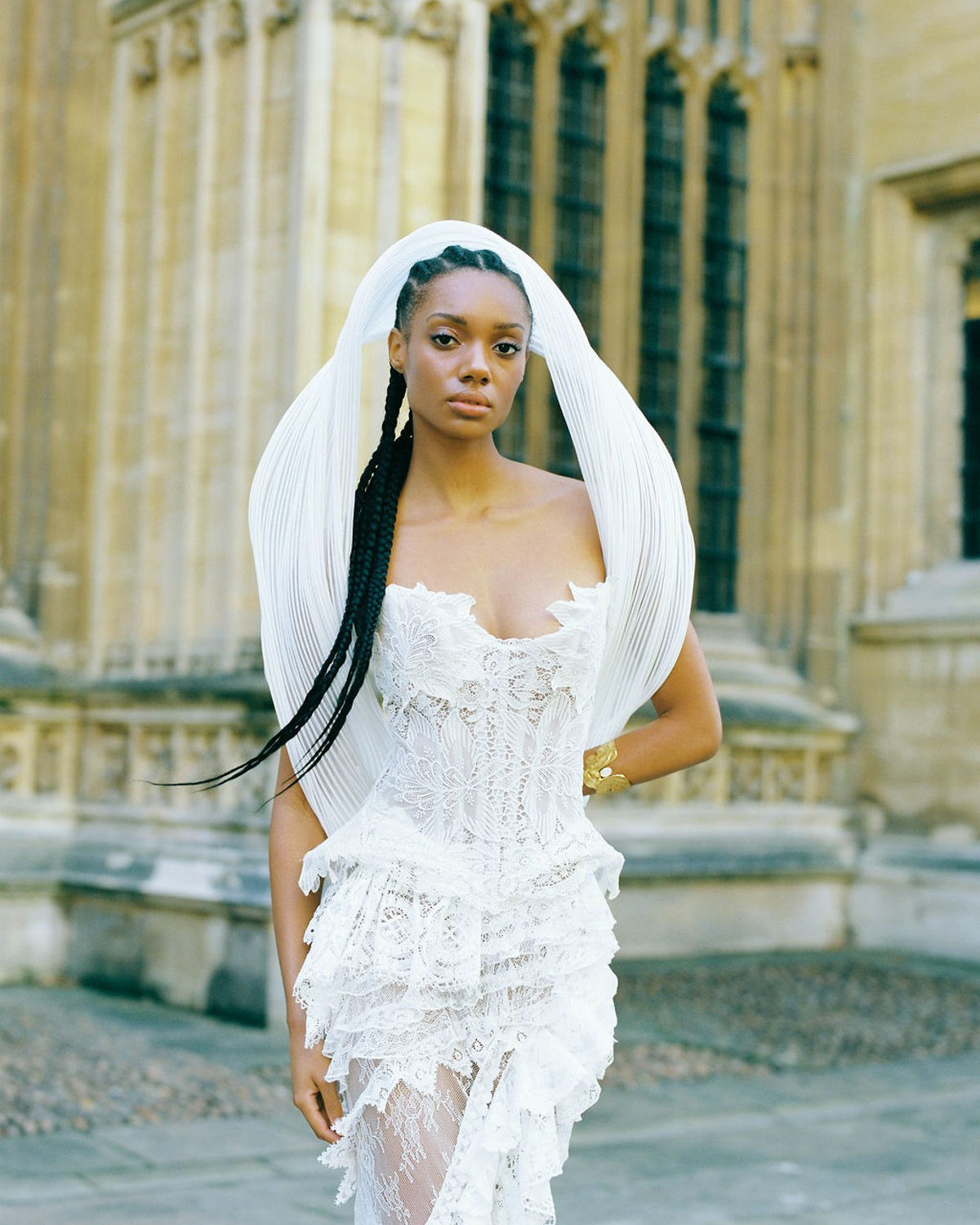 Within the centuries-old walls of the Bodleian Library, a modern bridal vision takes shape. Captured by the discerning eye of photographer Yazmine May, this editorial explores the quiet tension between historic architecture and modern femininity, where fashion converses with the setting. Every detail, from the romantic silhouettes by Julita London to the nuanced florals by The Unwalled Garden, works in harmony to soften the weight of the stone, introducing a sense of intimacy into the space. Grand ceilings meet textural fabrics, and archival silence becomes a canvas for contemporary expression. The imagery, shot primarily on medium format film, carries a painterly richness, depth, and stillness that mirrors the atmosphere of the library itself. Guided by art and emotion, this visual story is a celebration of craftsmanship, collaboration, and shared intuition.