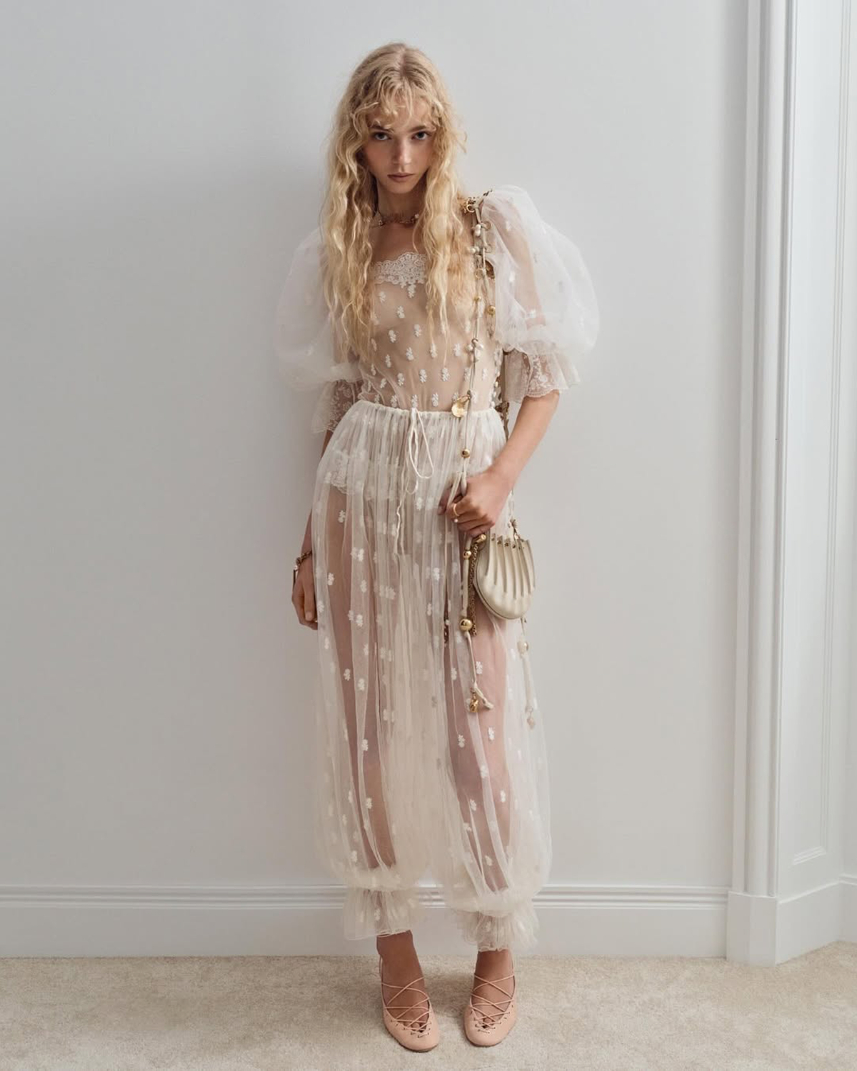 Full-lace bridal looks have returned, but forget any predictable patterns of the past. Designers are leaning into bold, head-to-toe lace with delicate motifs or textural three-dimensional guipure. Silhouettes are more relaxed, often vintage inspired and free from constraint or corsetry with flowing fabrics for an effortless, light appeal. The key is unlined or nude lined ivory lace that sways and catches the light with every step for a more bohemian appeal, than the classicism of white lined lace.