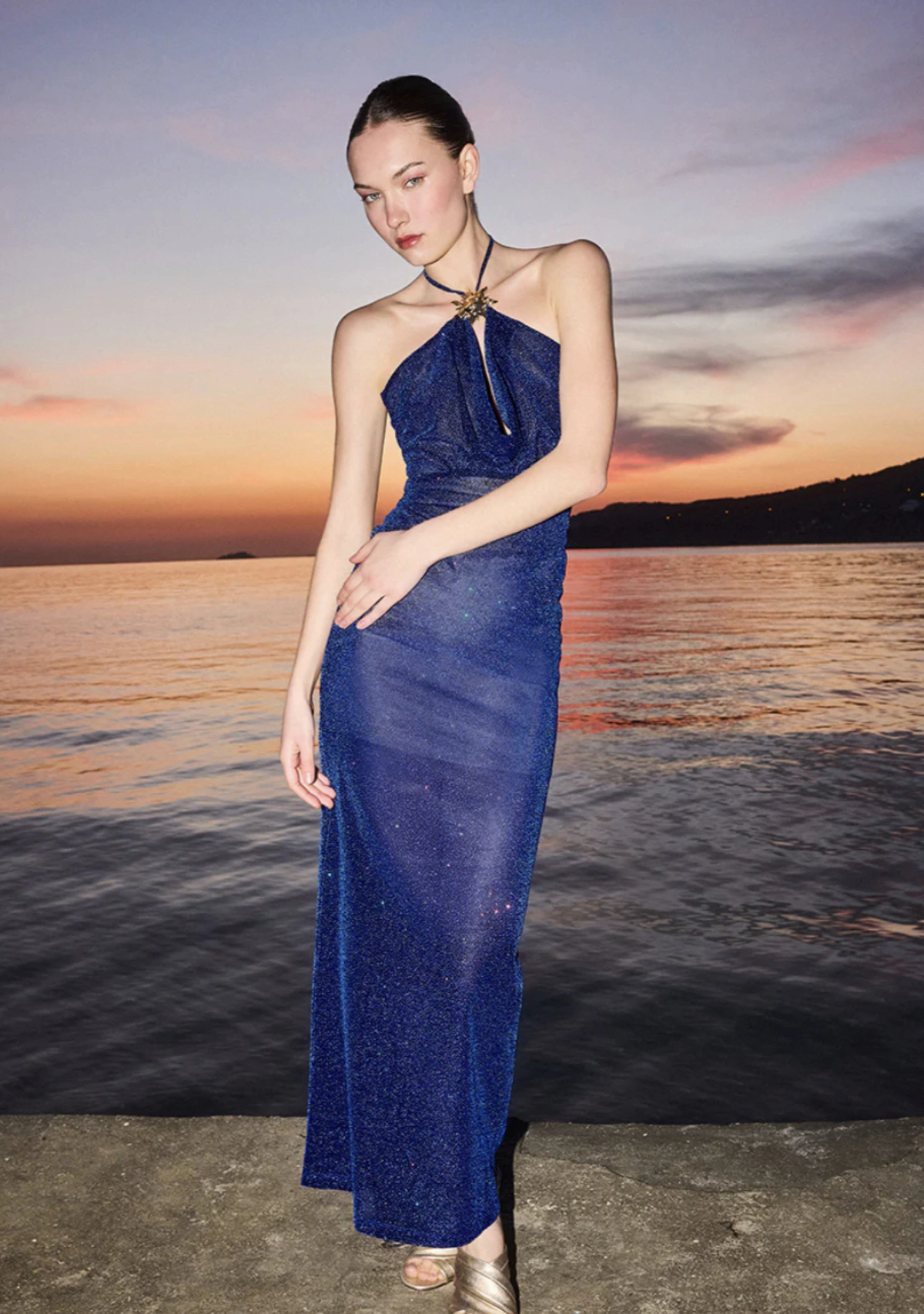 Few settings are as gorgeous, or as quietly anxiety-inducing, as a black-tie evening at a villa. How formal are we actually talking? Is everyone in a floor-length gown, or is that just me? For this one, it’s best to lean into the evening energy. Longer silhouettes, a bit more structure, richer tones, so think deep burgundy, sheer black, anything that feels considered and, yes, a little extra in the best way. You’re still in a warm setting, so nothing should feel too heavy, but there is a sense of occasion to it that you want to meet. Accessories are where everything really comes together. A touch of metallic or subtle shimmer always works. Pair your look with a gold clutch with hardware detail, a velvet box bag, sparkly earrings that wow.