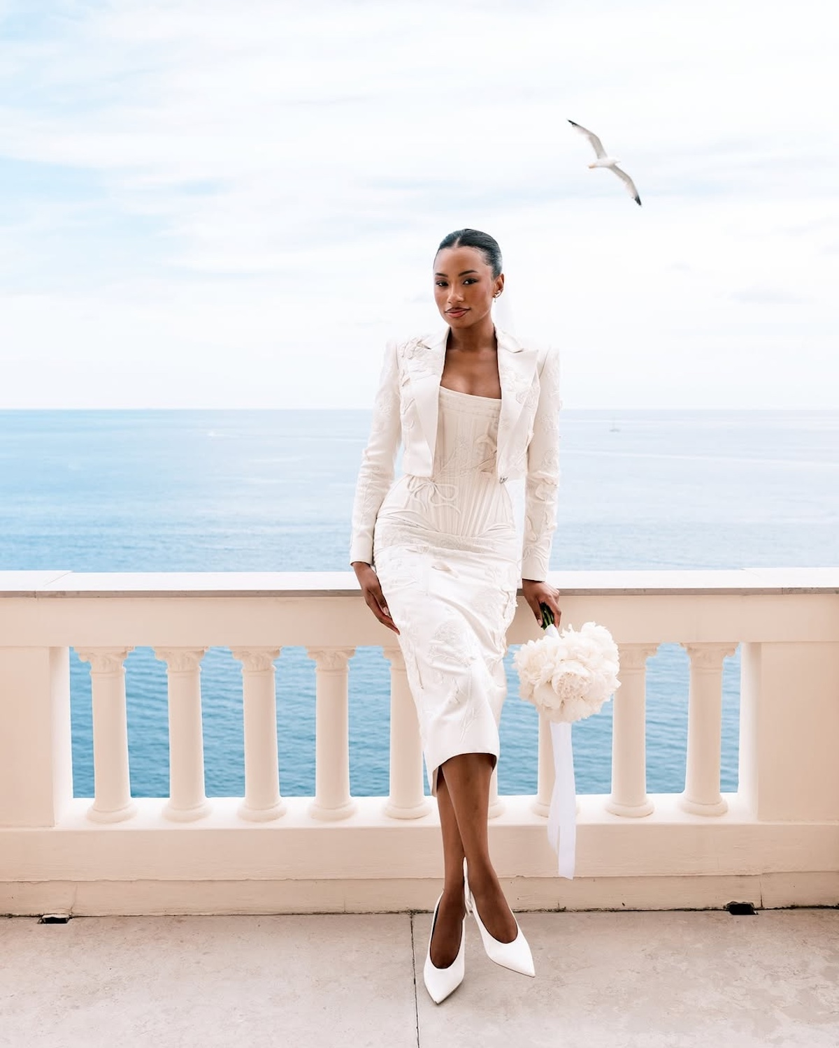 Australian model Dominique Elissa Faludi and Thomas Bull celebrated their love in a summery Sicilian wedding at the breathtaking Castello San Nicola, a 14th-century castle perched above waters. The bride captivated in couture gowns, including a striking off-shoulder design with a corseted bodice, subtle drapery, and a graceful drop-waist skirt, topped off with a playful bridal bandana. The day was a vibrant fusion of elegance and local charm, with pomegranates, grapes, and refreshing matcha shots adding a flavorful Sicilian touch. Guests were enchanted by the romantic setting, where sunlit terraces and lush gardens provided the perfect backdrop for the celebrations.