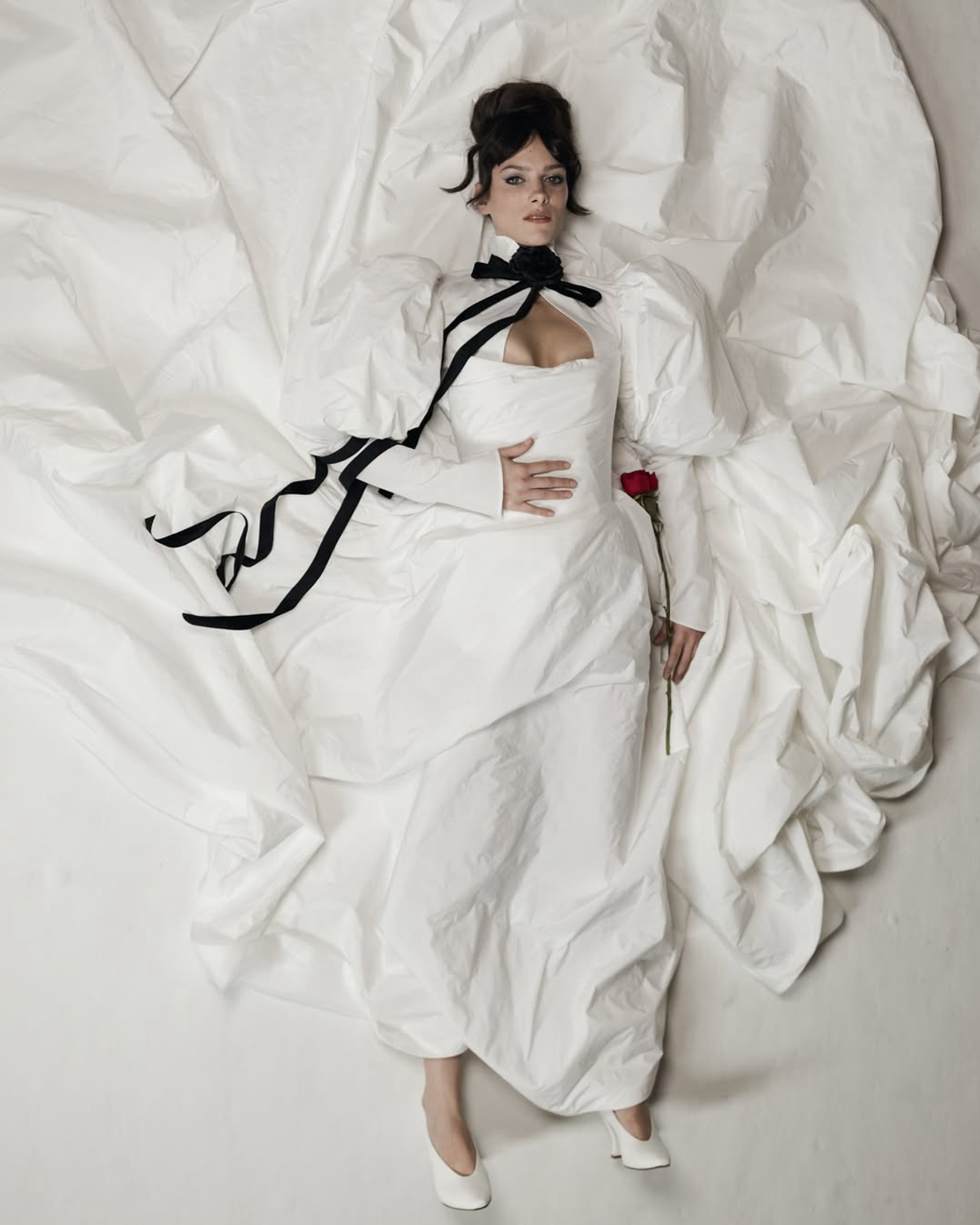 Pinterest is predicting a rise in the after-dark aesthetic, pushing bridal toward a more sensual, understated expression of romance. Seductive, but never showy—this trend favors sheer corsetry, smoky veils, and inky accents over traditional sweetness. It’s for the bride who leans into mystery, who trades soft sparkle for moody elegance, and knows exactly how to leave an impression.