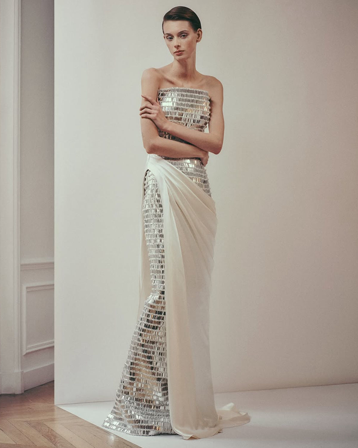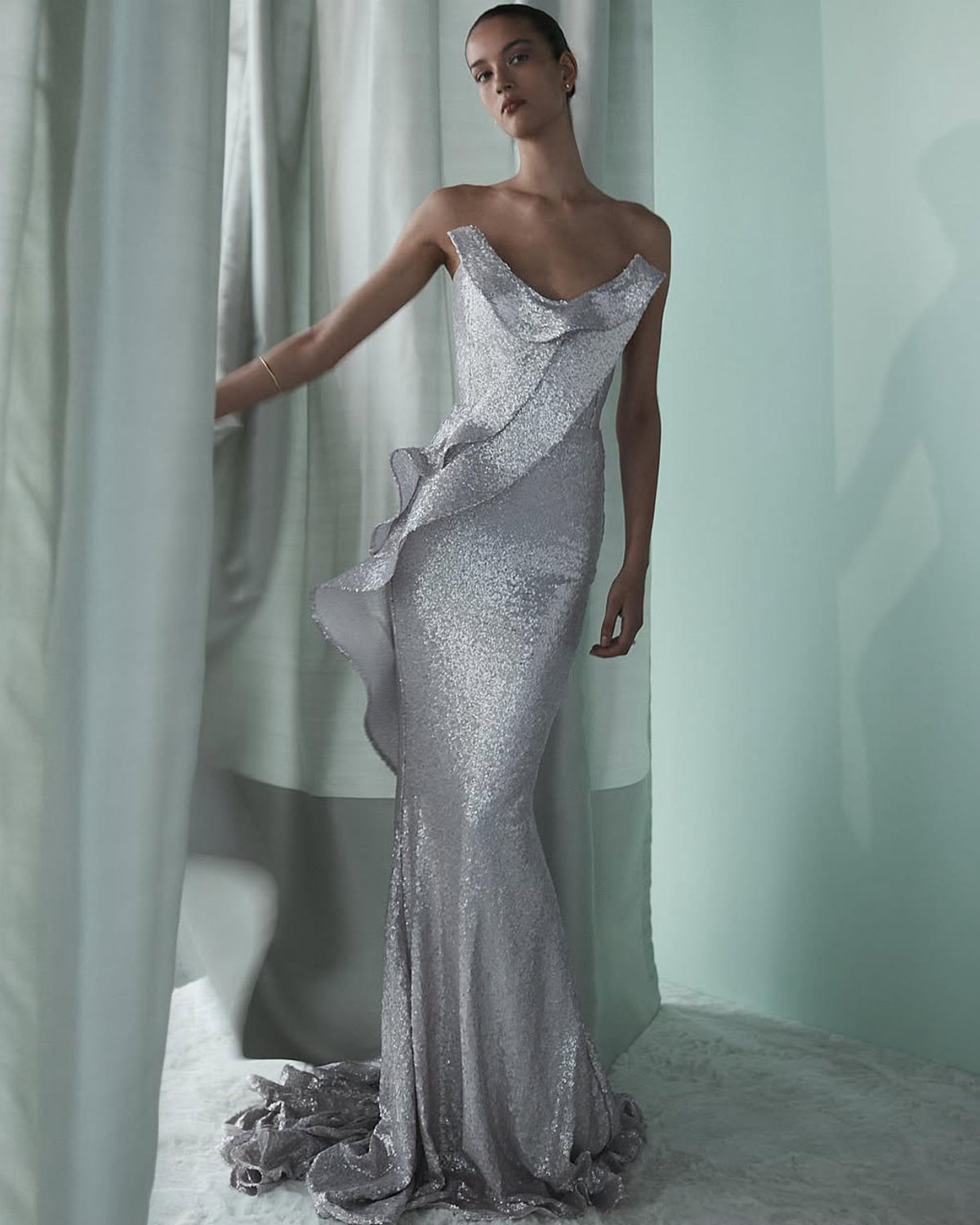 In 2026, Pinterest predicts Gen Z and Millennials are looking to the cosmos for inspiration, ushering in a wave of experimental, high-concept bridal looks. Soft metallics, celestial motifs, and silhouettes lifted from sci-fi dreamscapes define the direction. Fluid yet structured, romantic yet futuristic. Shimmering veils, galaxy-like textures, and subtle iridescence create a look that feels weightless, luminous, and elevated.