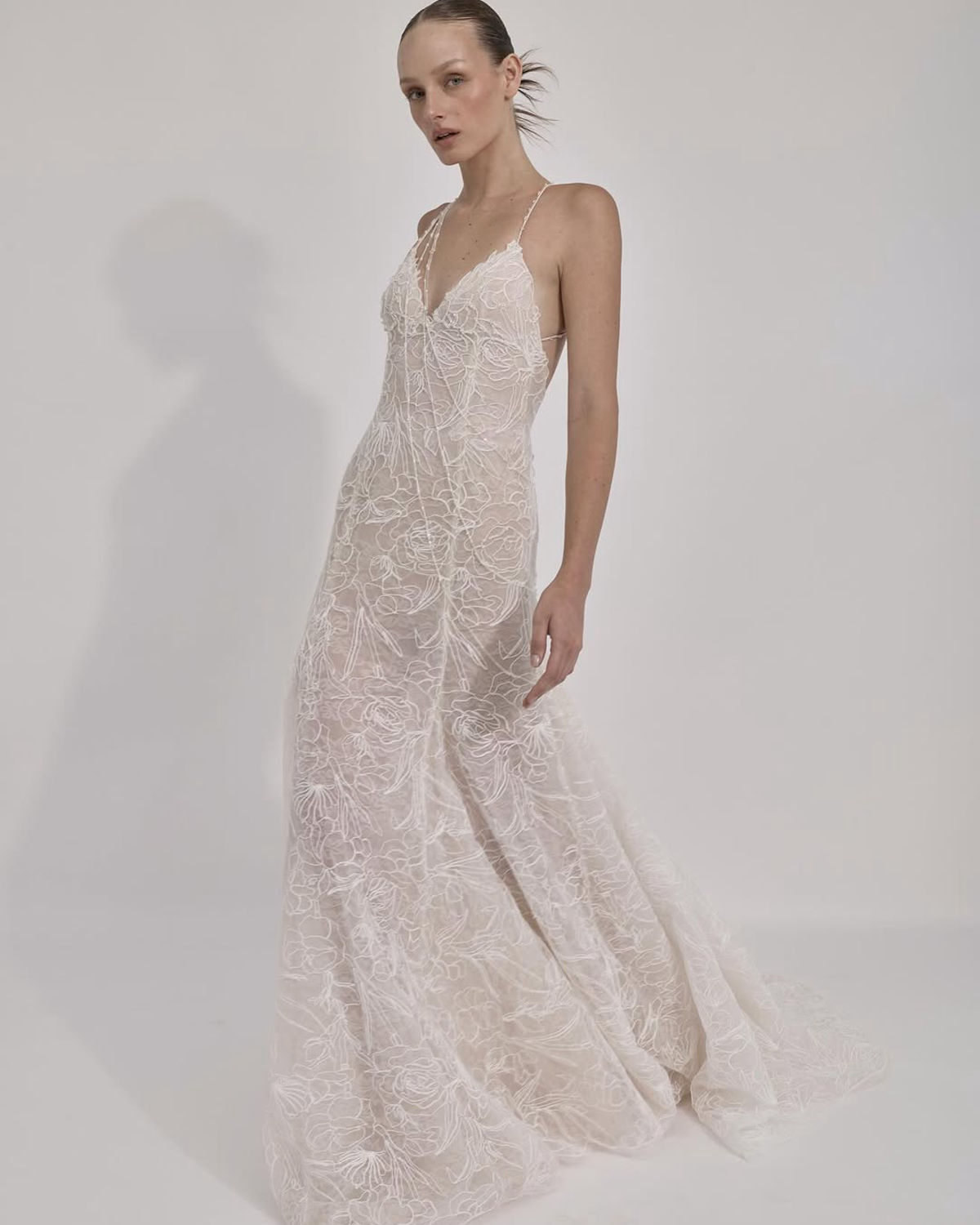 According to Pinterest, 2026 is shaping up to be wild in the most couture way possible. Nature motifs, butterfly silhouettes, earthy appliqués, and even abstract animal prints are beginning to bloom across boards, merging fantasy and ferality into a single, expressive mood. The look leans into the raw, the mythical, and the deeply textural. Perfectly made for immersive, landscape-driven celebrations where the setting is part of the story.