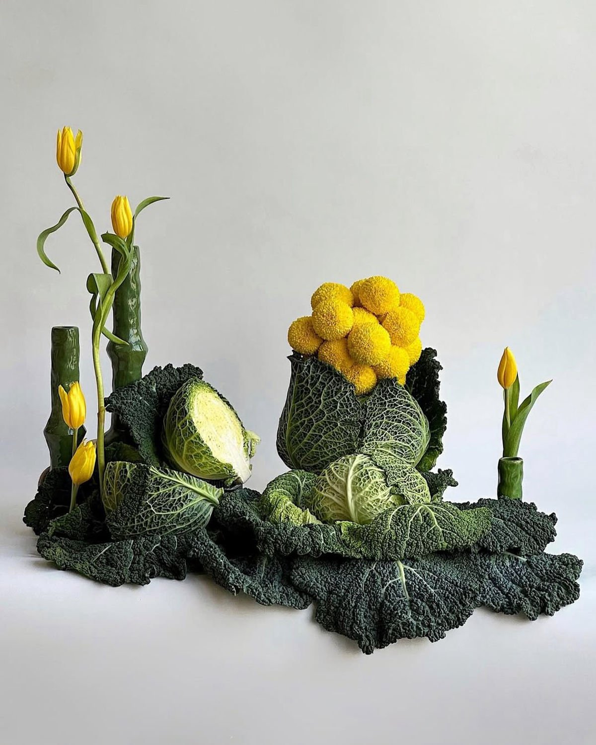 Cabbage Crush is exactly what it sounds like—unexpected, a little absurd, and totally on-trend for 2026. Pinterest predicts a major love affair with this leafy green, and florists are in on the fun. From ornamental centerpieces made of layered savoy to cabbage-head installations and even sculptural “bags” crafted from cabbage leaves, it’s a fresh way to bring texture and irony into floral styling.