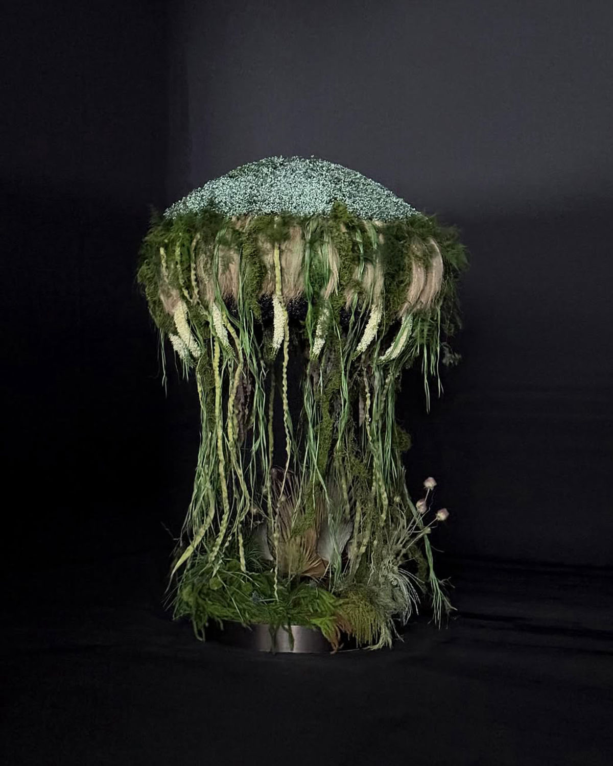 Raw textures, otherworldly shapes, and a sense of untamed wilderness are taking florals into uncharted territory. According to Pinterest searches, the interest for nature-driven, immersive design is growing, leaning into organic surrealism. Moss-covered structures, foraged grasses, sculptural greenery, and elemental forms take center stage, blurring the line between landscape and installation. It’s earthy without feeling rustic, wild yet deeply intentional.