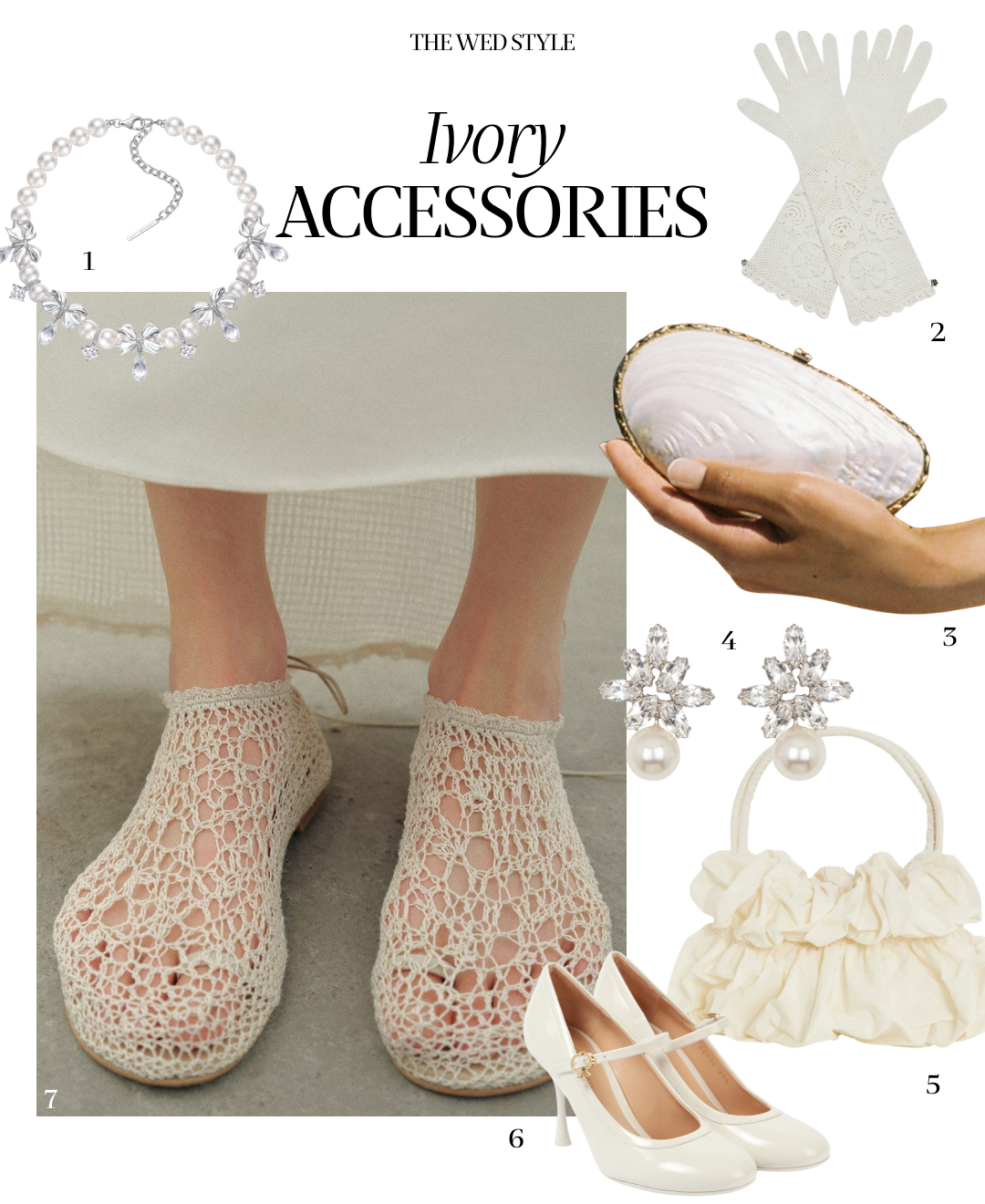 To maintain harmony, choose ivory accessories that match your dress or are a slightly different shade to avoid clashing. Consider incorporating a statement piece, such as an ivory pearl necklace or chandelier earrings, to add sophistication and a touch of vintage charm. For an extra layer of elegance, choose an ivory clutch or shoes to match your accessories and create a cohesive look.