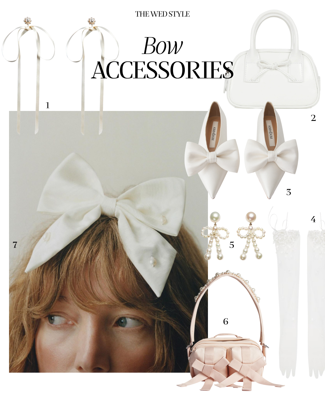 Bows are prooving they're here to stay, ranging from subtle, delicate details to bold, eye-catching elements. If you prefer a more subtle approach, look for small bows on hair accessories, such as a bow barrette or ribbon tied around a bun or ponytail. You can also choose bow-shaped jewelry, such as earrings or a necklace, to subtly echo the motif.