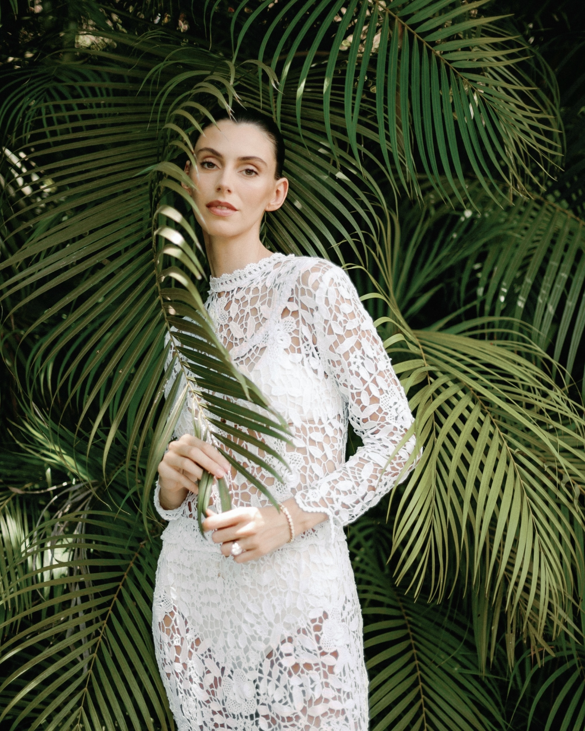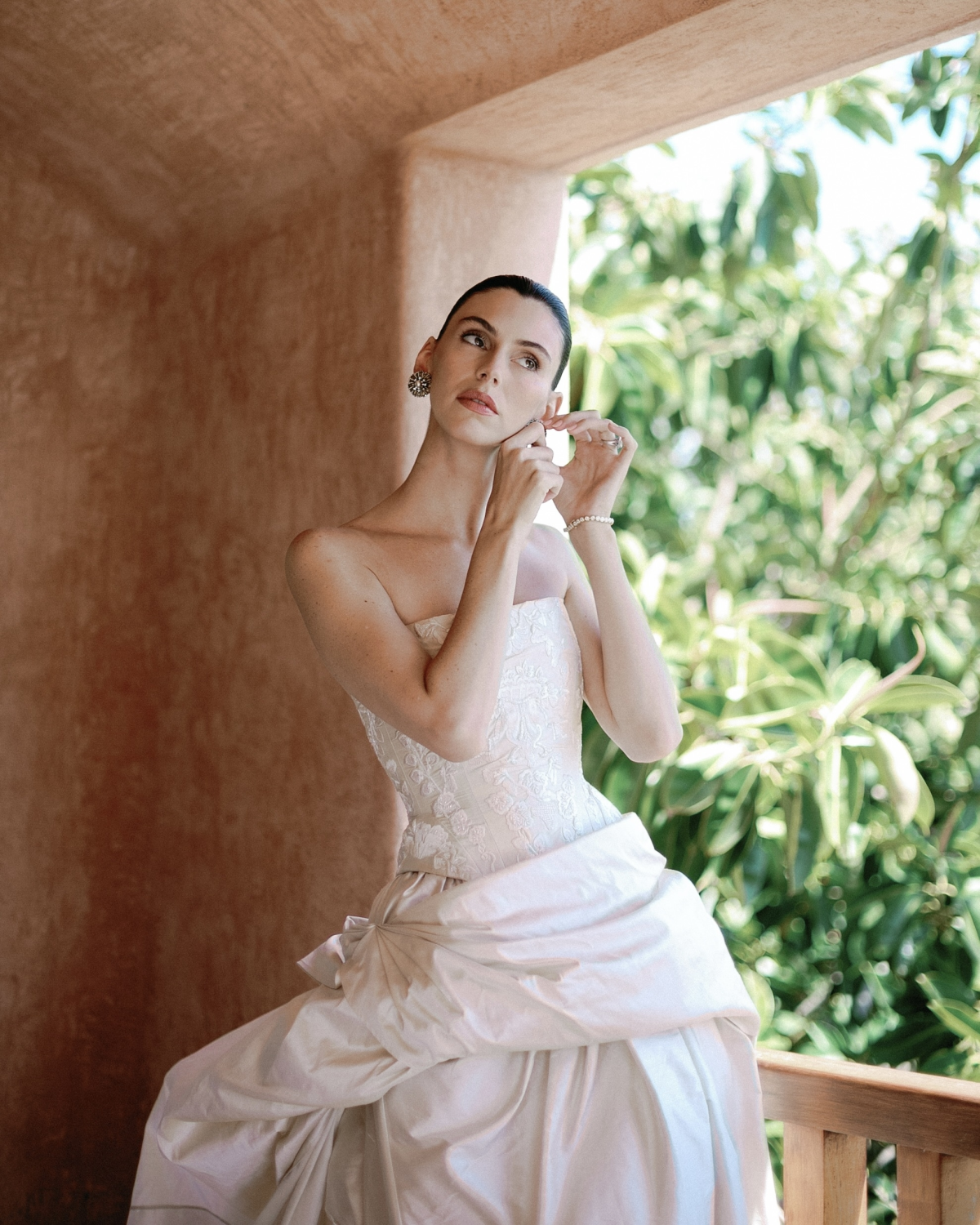 Having modeled for bridal brands growing up, trying on gowns felt performative—none of them felt like me. After exhausting every designer in NYC and LA (and diving deep into vintage), my mom and I flew to Paris and London. That’s where we wandered into Annie’s Ibiza, one of my favorite boutiques. Annie had just launched a bridal capsule collection that was vintage-inspired, artful, and fashion-forward. Over the next year—with countless Zoom fittings and a few more London trips—we created a custom four-piece look: a corset, overskirt, mini tulle layer, and long underskirt, all designed to be worn again in different ways. The structure echoed the sculptural architecture of Careyes.