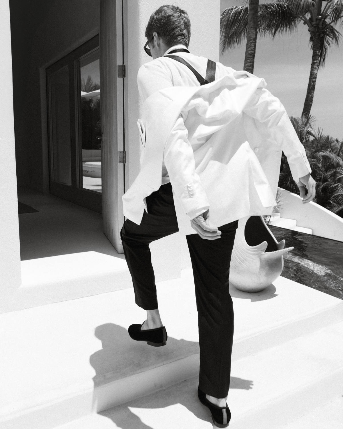 Parke wore a custom white silk tuxedo jacket with a shawl collar and double-breasted silhouette, paired with silver pheasant cufflinks I gifted him. His wing-collar shirt and silk bowtie were made by Budd’s in London.