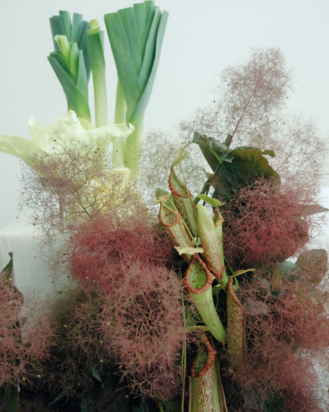 Surprising floral varieties, seamlessly combined with vibrant vegetables, create an eye-catching, cohesive composition that challenges classic bridal expectations, delivering an imaginative tableau infused with creativity, sophistication, and edge. This daring mix not only exemplifies Emotions & Math's capacity for integrating the unconventional into stunning visual narratives, but also sets a new standard for what bridal photography and videography can achieve.