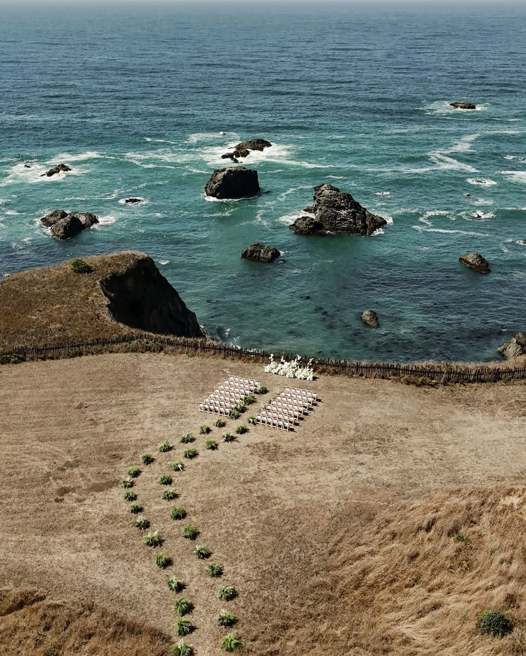 Looking for a unique seating arrangement? LaFederica shares a creative idea: "Replace the traditional rows of chairs with low cocktail tables placed along the aisle. This setup encourages guests to stand or sit at their tables with a drink in hand, fostering a casual and social environment. The idea is to create a space where guests feel more comfortable and open to sharing their stories, anecdotes, and memories of the couple."