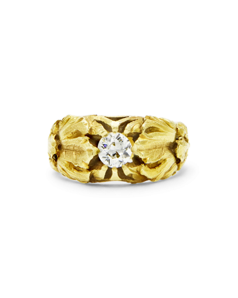18K Yellow Gold and Diamond Floral Iris Ring, $12500
