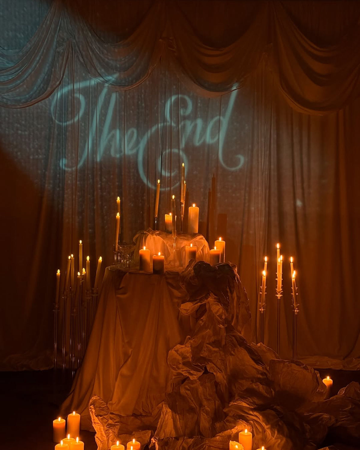 When the doors open or the curtain lifts, guests should feel a visual shift. And that comes from layered lighting. Begin with an ambient base that fills the room, then build depth with accents—pin-spots gliding over centerpieces, soft color washes illuminating draping or architectural lines, and candlelight flickering across tables like tiny constellations. Play with texture: chandeliers that cast sculptural shadows, reflective surfaces that catch and scatter light, or metallic décor that glows from within. Feeling bold and modern? Drench the entire space in a single hue for a high-impact, monochrome moment, use large-scale video projections to turn walls into moving artworks, or lean into futuristic LED installations for a cutting-edge, editorial dreamscape.