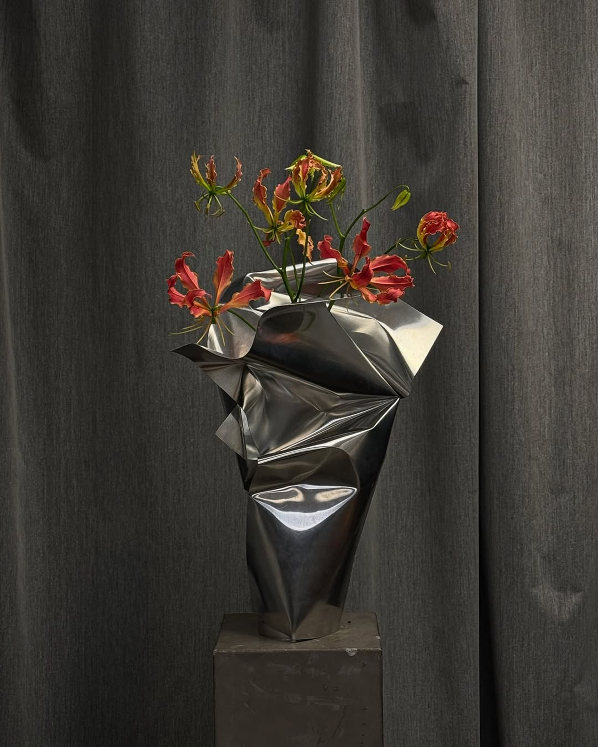 This year's florals are getting a major, heavy metal upgrade. Emerging as one of the most compelling wedding trends of the moment, metal-wrapped florals reframe traditional arrangements through an industrial lens. Florists are moving beyond ceramic and glass vases, embracing chrome, steel, and sculpted metal to encase or accent blooms instead. This striking contrast creates tension between softness and structure, with bouquets bound in gleaming wraps, centerpieces rising from architectural vessels, and petals subtly reflected in the shimmering finishes. This style is the perfect addition for any modern wedding, sharpening silhouettes and elevating even the simplest, ikebana-inspired arrangements. It's a bold transition from artistic, over-the-top arrangements, where the metallic foundation itself becomes part of the storytelling, signaling a futuristic, art-gallery-like aesthetic that feels undeniably fresh.