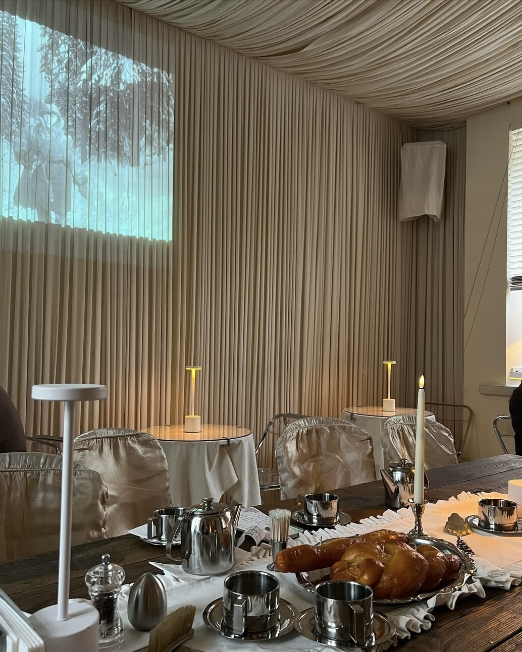 If you didn’t catch THE WED’s NYC Soirée, don’t worry — the breakout decor trend from the night is about to be the staple centerpiece of every cool reception. Film projections are fast becoming the visual trend of the season, stealing the spotlight and transforming event design into pure cinematic art. Picture this: a softly lit room where the walls come alive, telling stories with every frame. The luminous shimmer of classic Hollywood scenes or the flicker of old family films paints the room with memory, mood, and motion. It’s not just what’s being projected — it’s how. Images cascade across sheer drapery, dance over silk, and ripple against textured walls, turning any reception into an immersive, cinematic dream. With just the right artistic decisions, film projections bring elegance, intimacy, and a hint of the avant-garde — making your celebration feel like a living film. Here’s how this trend is taking over.