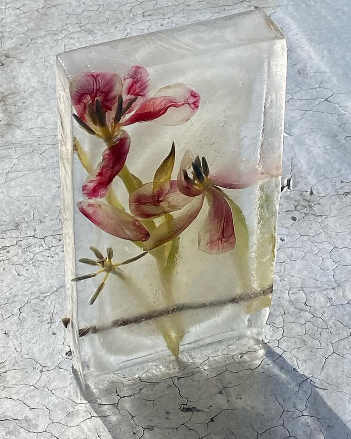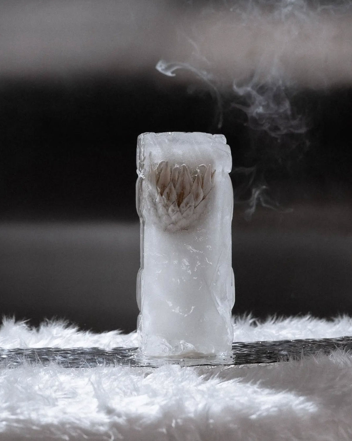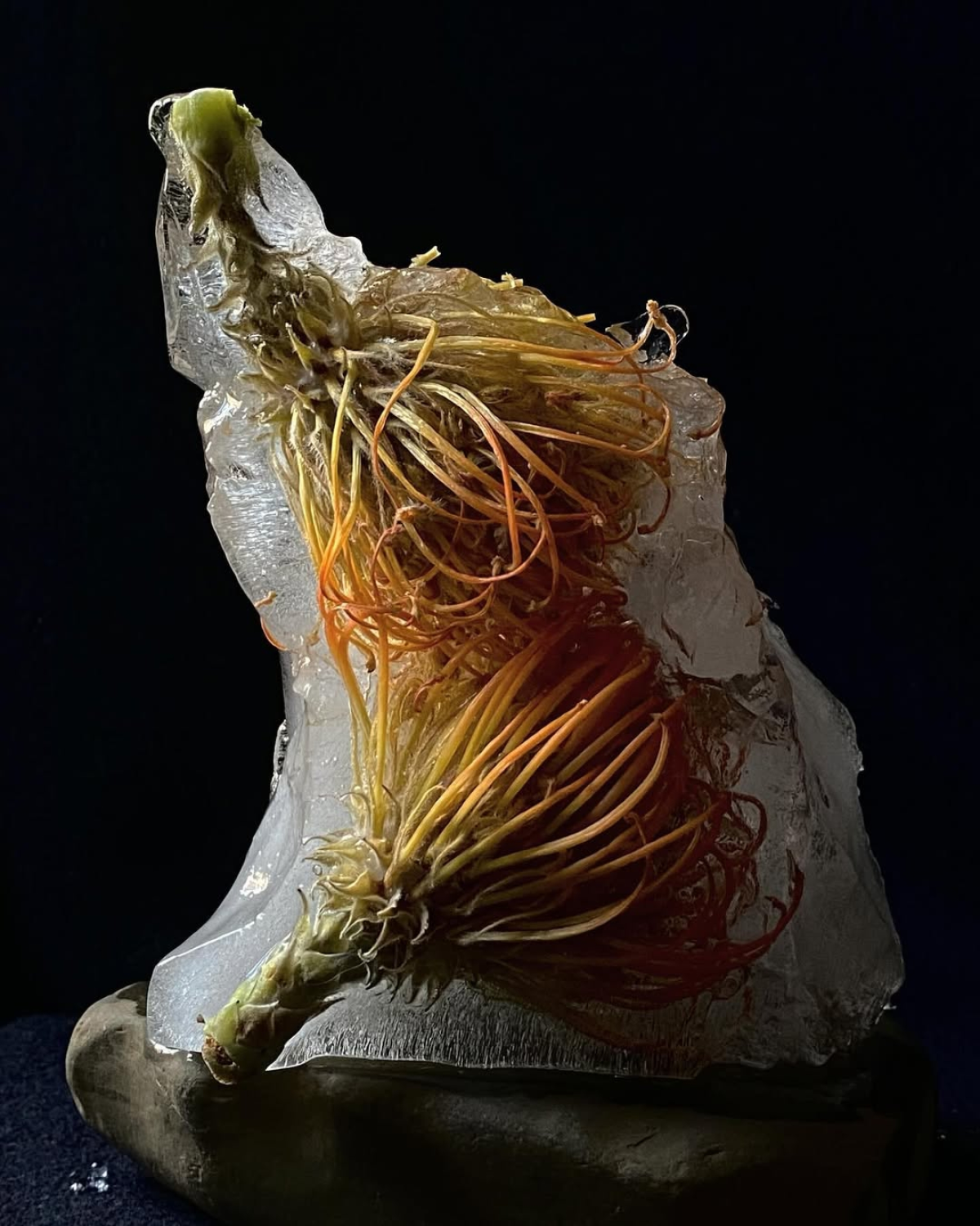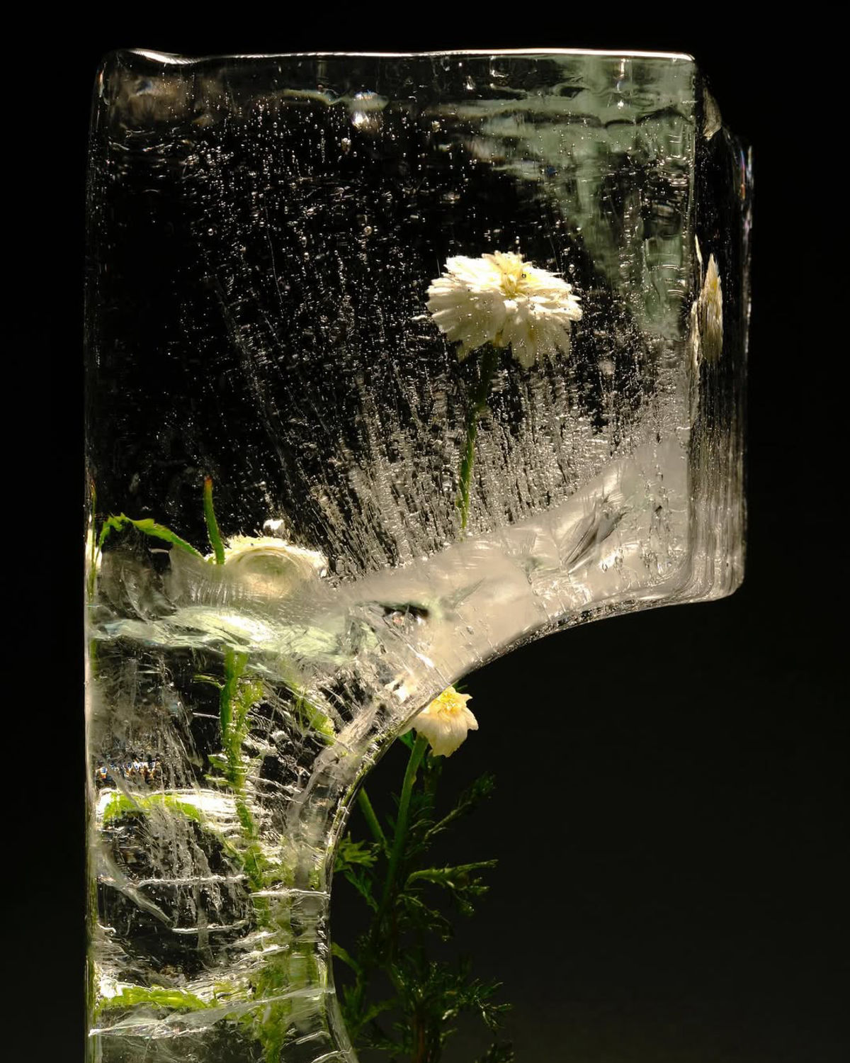 The coolest floral trend we’re currently obsessing over? Frozen florals. These winter-inspired botanical creations are transforming tablescapes and ceremony spaces into sculptural dreamscapes. Think delicate blooms suspended inside crystal-clear ice cubes adorning a reception table or standing tall as statement blocks, glowing like modern altarpieces. Insanely poetic and romantic, the trend captures flowers at their most fleeting and holds them perfectly still.