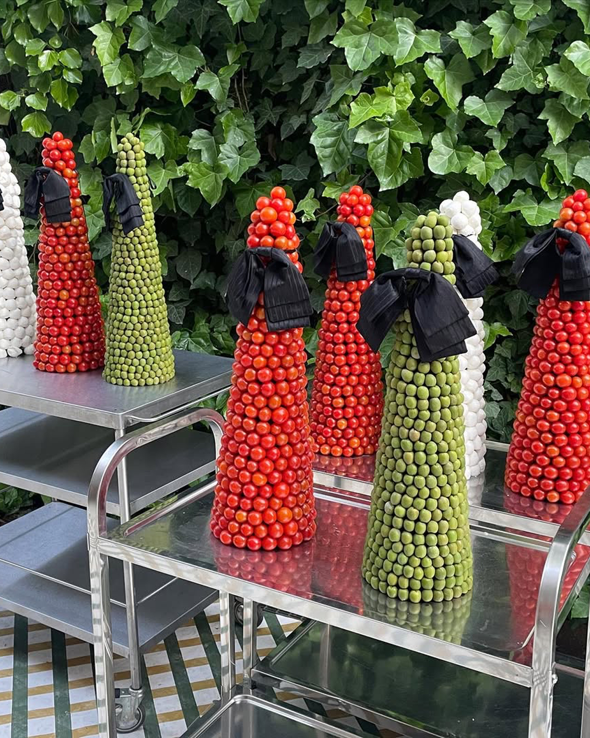 Geometric floral arrangements are reshaping wedding flowers, transforming organic materials into striking sculptures. Florals, grasses, fruits, and even vegetables are sculpted into symmetrical masterpieces that bring a bold contrast to floral design. Shaped into cones, pyramids, towers, cubes, and spheres, these geometric arrangements create an unexpected sense of order with these otherwise organic materials. This trend lends itself beautifully to grand, sculptural installations that define a space, but it’s equally captivating on a smaller scale. Showcase small cones or spheres on table settings and larger pyramid or cube arrangements around the ceremony for an editorial twist. It’s a technique that feels both innovative and familiar, balancing natural beauty with architectural design.