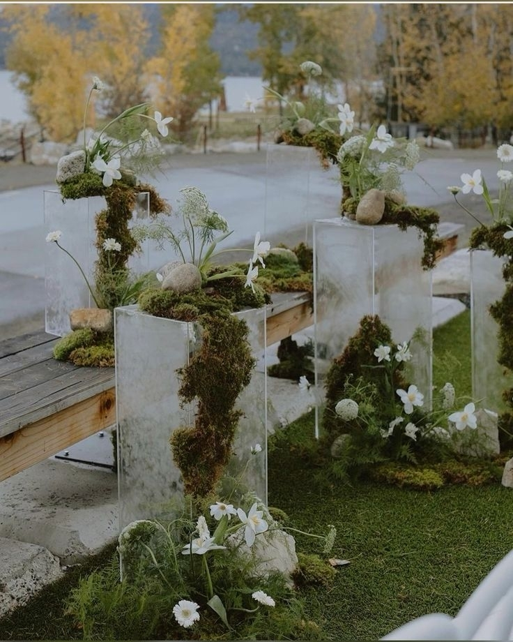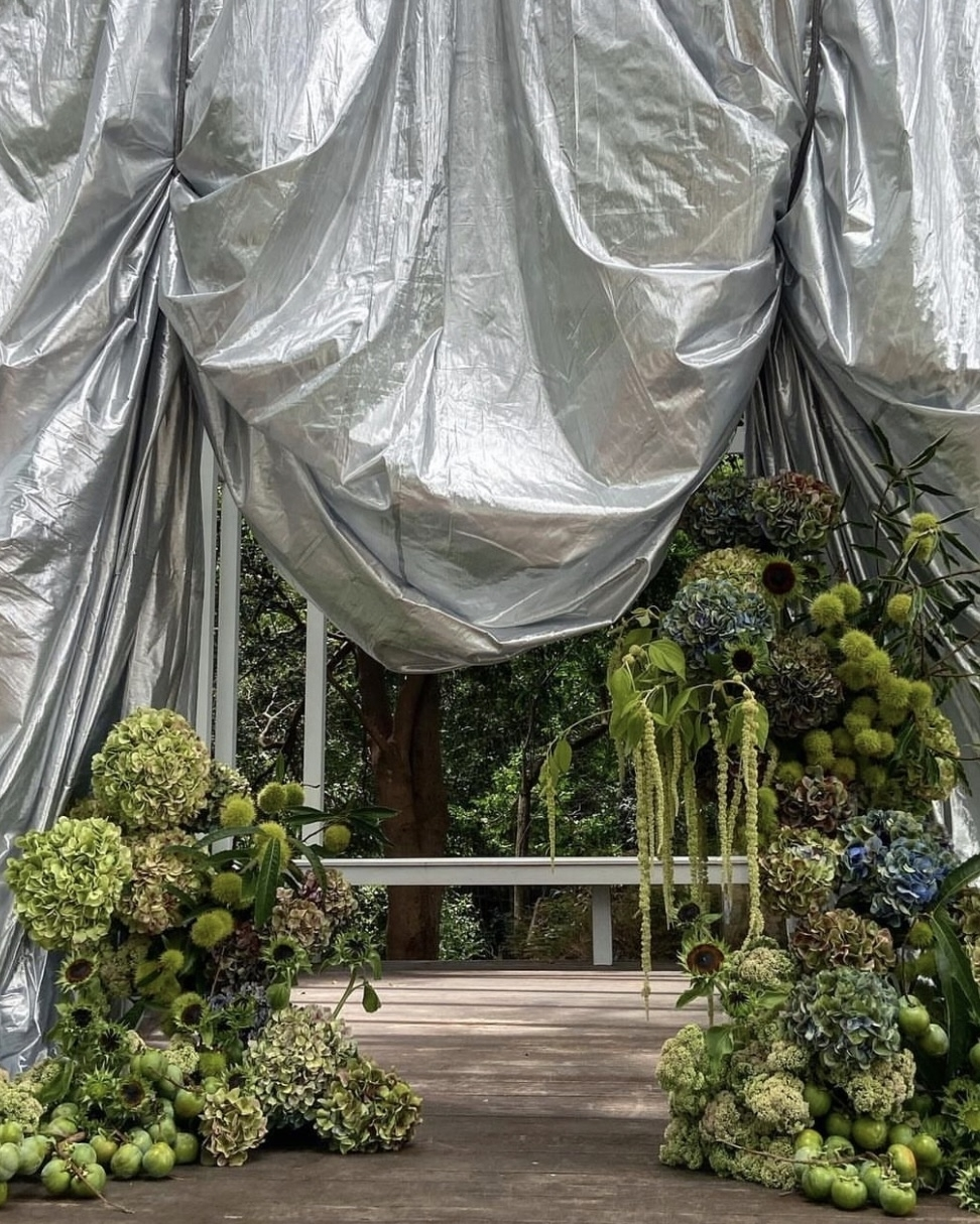 A journey back to nature, to a pristine state of bloom and complete balance of the wild. Embodying the perfectly imperfect beauty of wild, untamed overgrowth, event design embracing lush greenery, opulent moss, textural grasses and green florals are having a moment this wedding season. As if reclaiming the earth to its natural state, bursts of textural varieties grow, climb, entwine and sprawl across the space, forming abstract sculptures and installations that create a striking visual contrast of soft verse hard, mother nature verse the man made. Incorporate this trend into every and any detail of the wedding styling – from the bride's bouquet to the ceremonial aisle and the reception tablescapes for maximum impact, a unified harmony that will wrap your mind, body and spirit in nature.