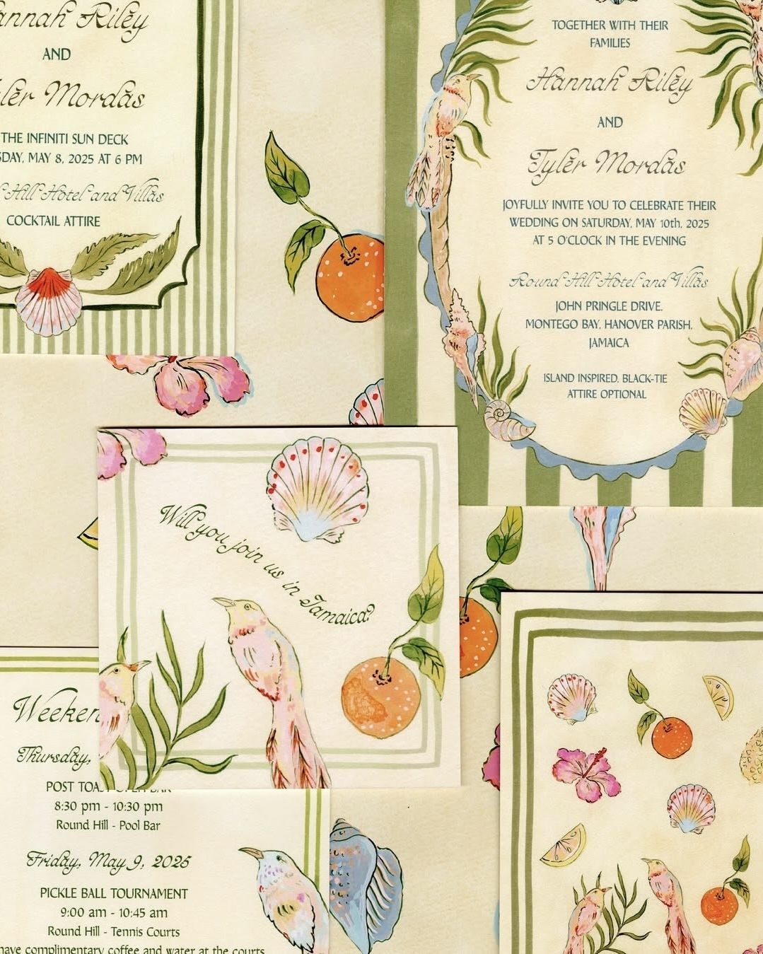 Stationery featuring illustrations of shells – both printed and natural – brings the ocean to the forefront in a fresh and refined way. Designs echo the rhythm of the tides with flowing scripts, sandy textures and sun-washed tones. Whether you're planning a destination elopement or a laid-back coastal celebration, every detail will evoke the serenity of the sea.