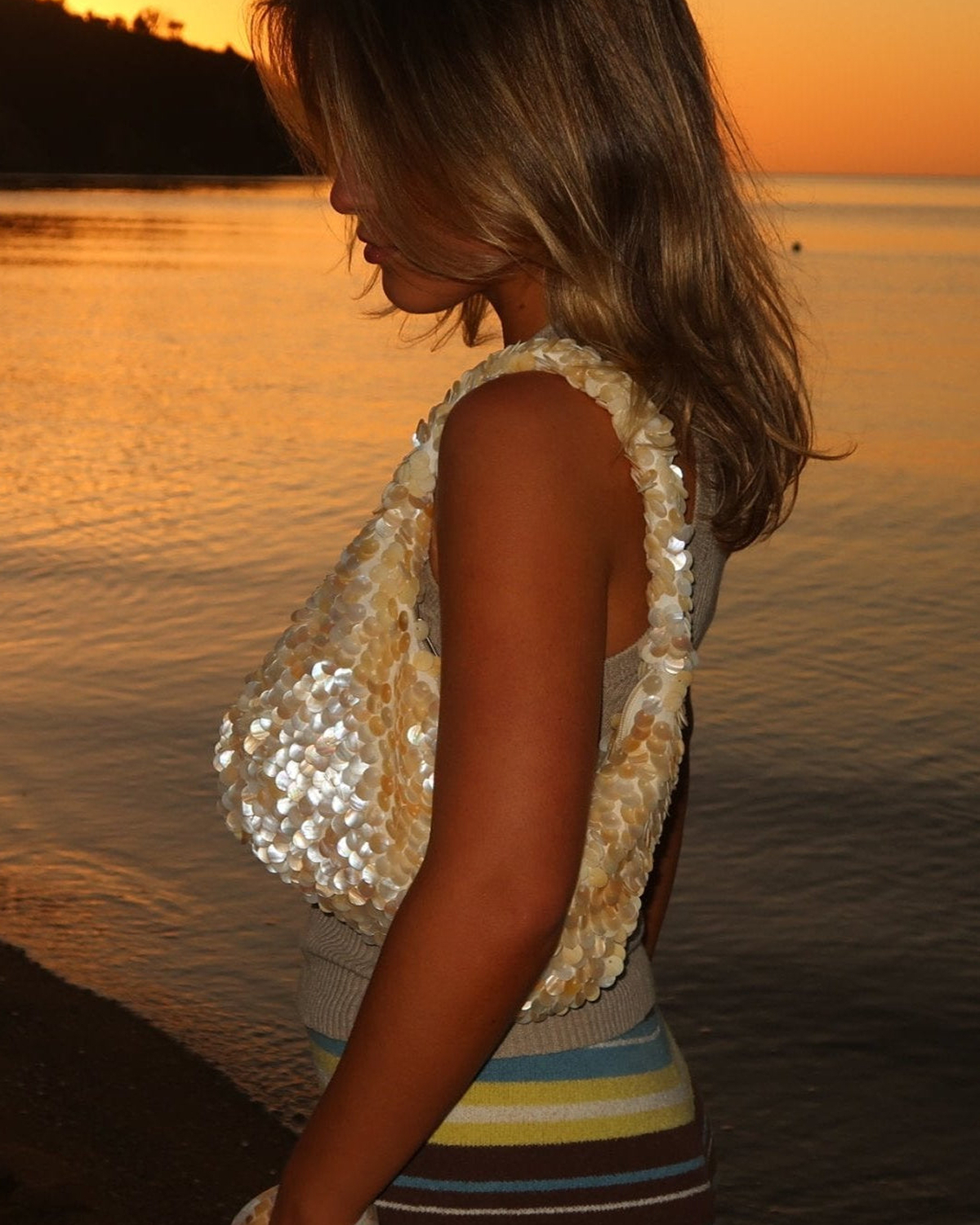 Beach days call for accessories that feel connected to the ocean, and a shell bag does exactly that. From small sculptural clutches to larger totes with shell embellishments, this piece blends whimsy with practicality. It’s a subtle way to nod to coastal style without being over the top.