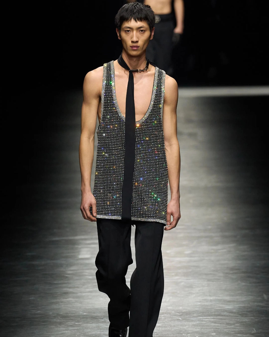 Speaking of everything shiny — sparkles, sequins, and rhinestones were stealing the show on Italian and Parisian catwalks. Glittering gems on collars, tops, and pants appeared throughout Sabato de Sarno’s latest collection for Gucci, which actually mirrored his womenswear debut. Dior's balletcore presentation and Amiri's nostalgic movie actor-inspired collection were also embracing the glitz, featuring lots of sparkly detailing, beads, and stones.