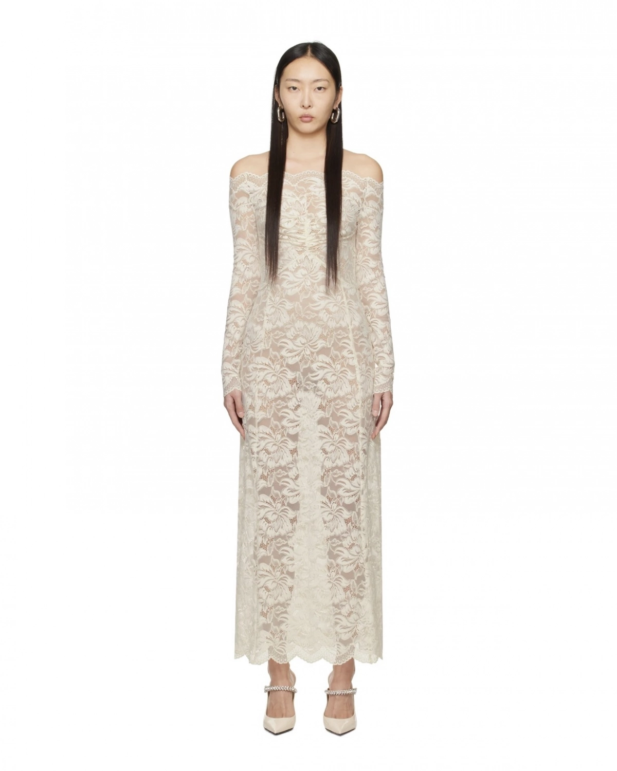 RABANNE Off-White Off-The-Shoulder Maxi Dress, $893