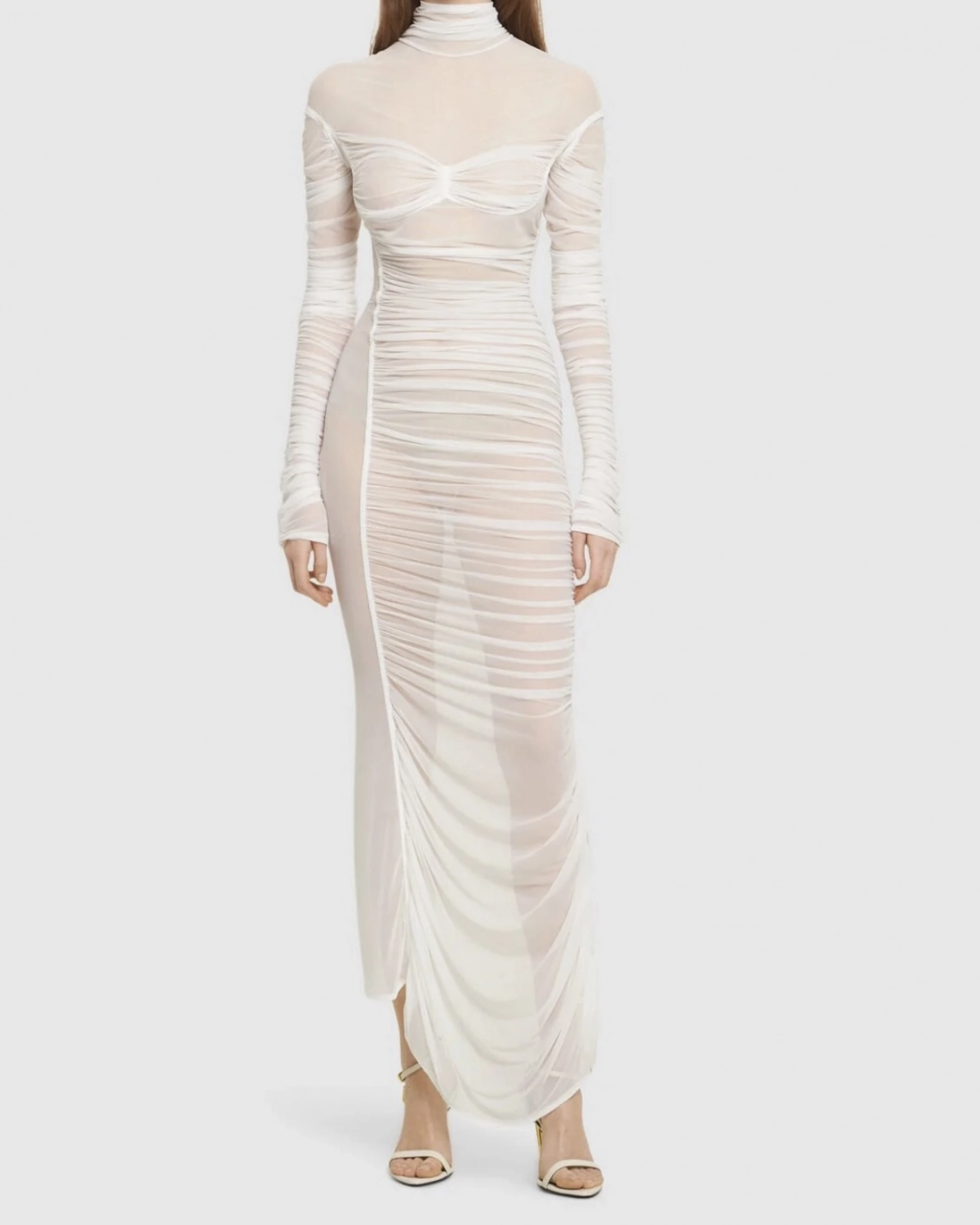 MUGLER Draped mesh maxi dress, $1,910