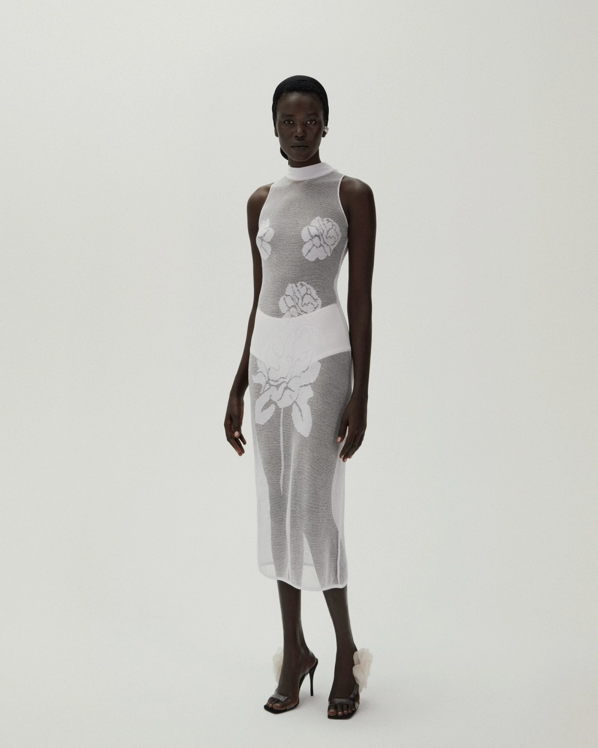 Magda Butrym Rose knit high neck midi dress in white, $1,170