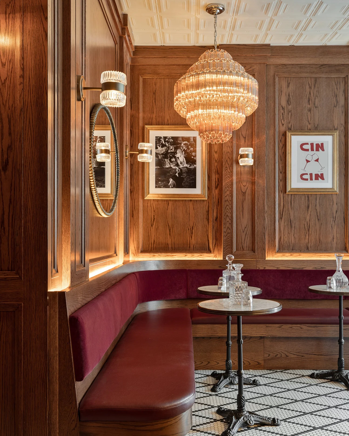 Monkey Bar is a Midtown institution dating back to 1936 that feels like dining in an old jazz bar, with moody lighting, wraparound murals, and plush red banquettes. The menu leans classic with prime steaks (including a gorgonzola-aged rib), French dip, seafood, and boldly composed cocktails. Service is polished, the ambiance feels straight out of a movie set, and the bar section continues to pulse with energy long after the dining room slows.
