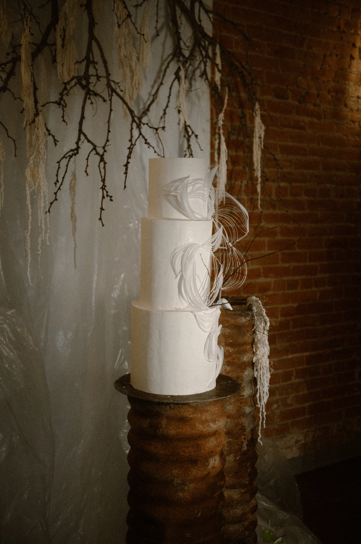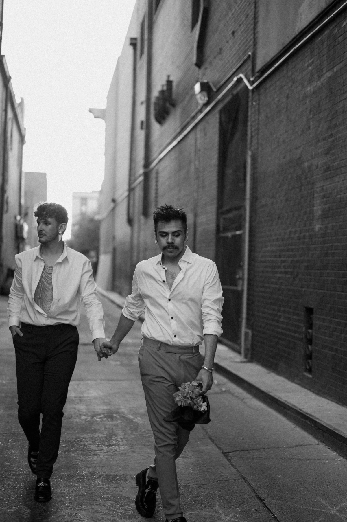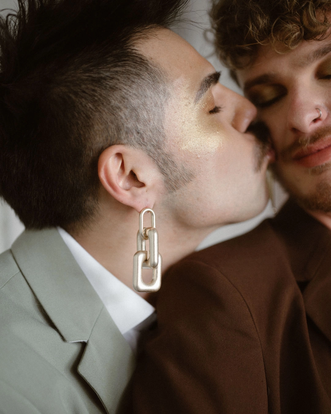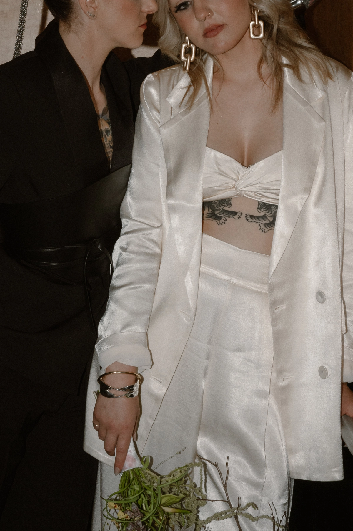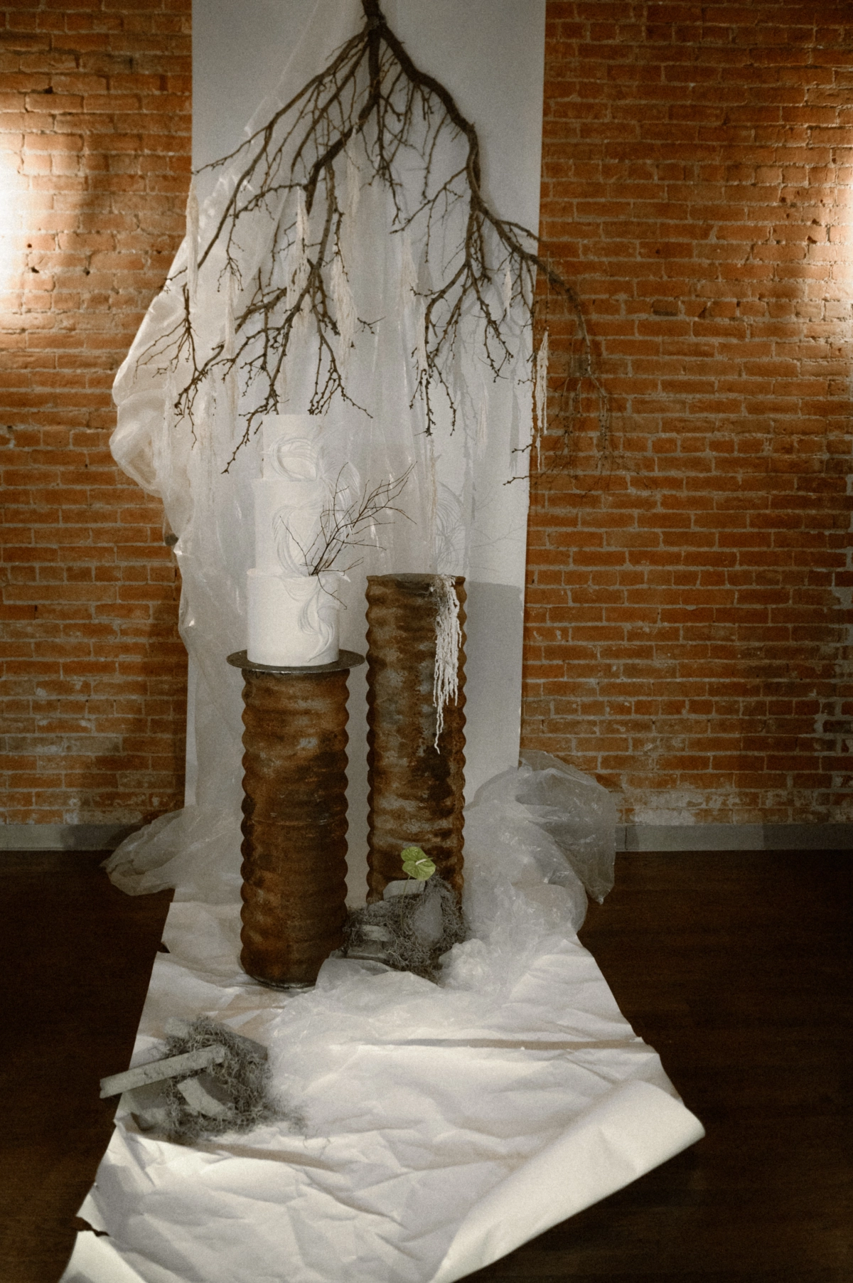 Floor-to-ceiling chains featured in the set design were also used to echo the concept of unity in marriage. They represented both strength and connection, a metaphor that carried itself throughout the entire shoot. To emphasize authenticity, the team utilized materials that felt natural yet refreshingly unconventional.