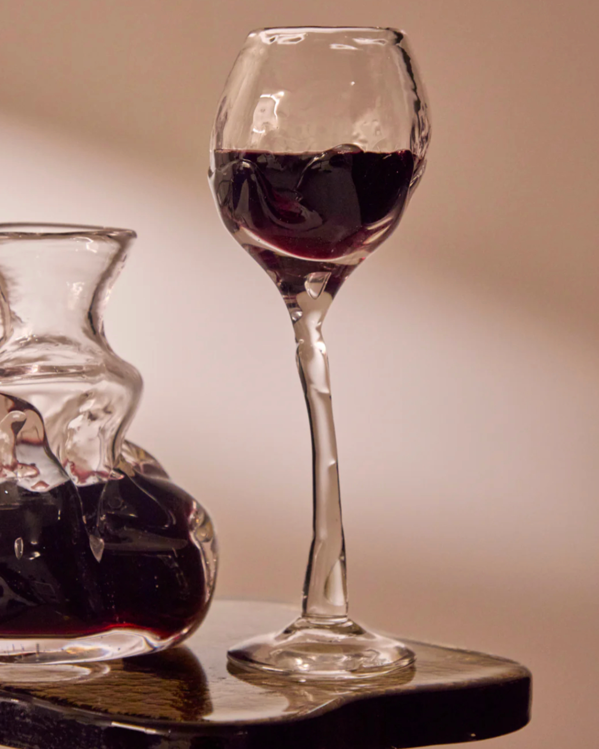 Szkło has that weighty, almost molten quality that makes you want to pick it up immediately. Founded in Amsterdam by siblings Aleksandra and Wojciech Zawistowski, the brand approaches glass with a distinctly sculptural, organic mindset. The silhouettes feel thick and tactile, with curves and edges that look as though they’ve been pulled straight from liquid form and frozen mid-flow. There’s a rawness to the texture, yet the finish is polished enough to work in just about any setting, from a minimal dinner table to something more dramatic. These are glasses that feel substantial in your hand and quietly powerful on the table — less delicate crystal, more modern artifact.