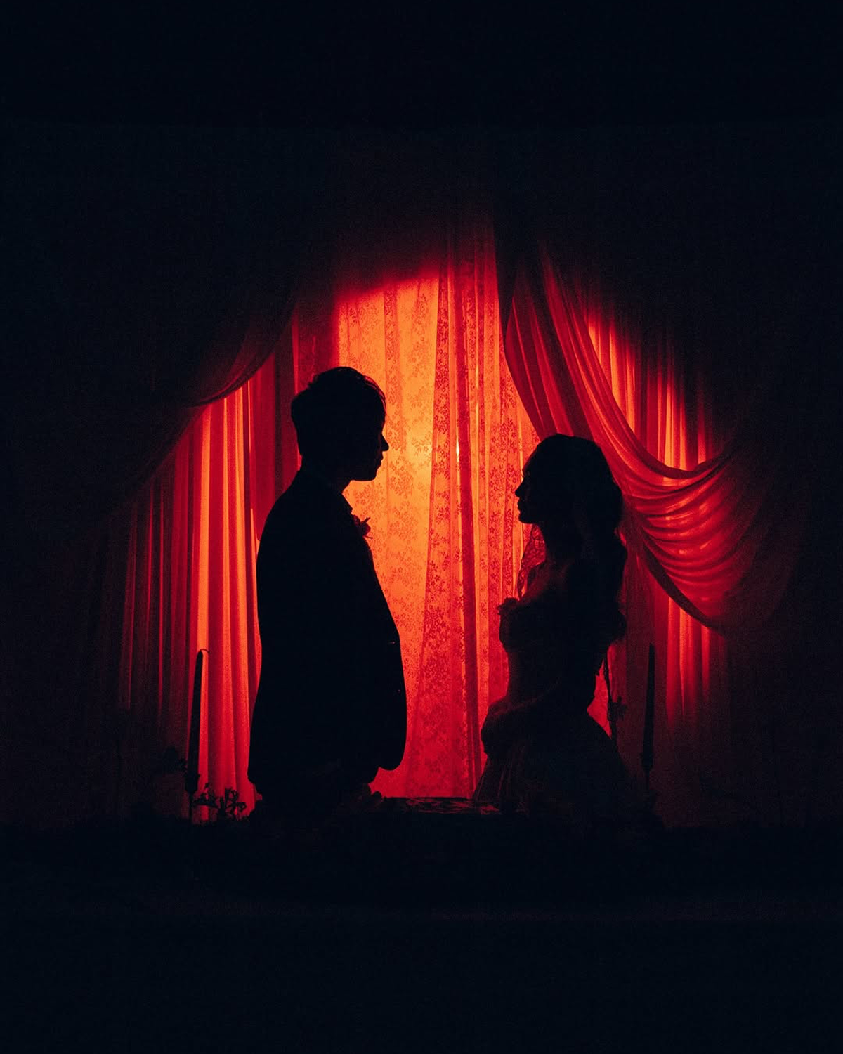Backlighting transforms a simple pose into a cinematic frame. Strong light from behind creates halos, silhouettes, and elongated shadows, stripping the image down to shape and connection. The key is to play with light, whether natural or statement spotlights, to create these timeless and bold portraits.