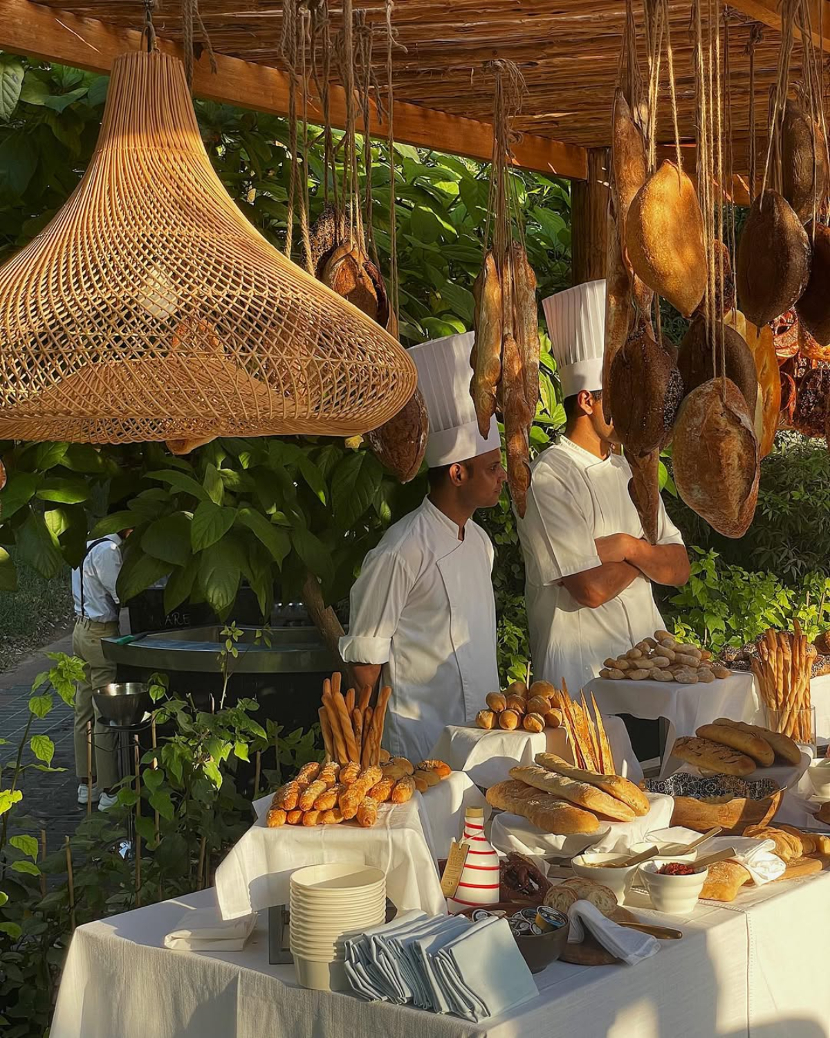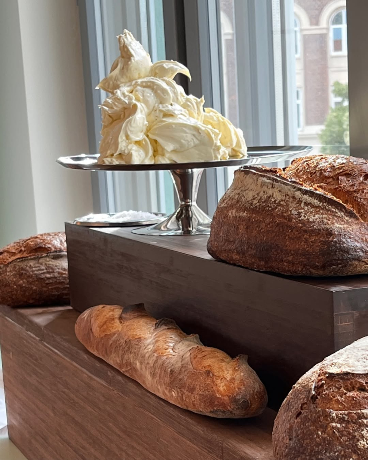 No longer an afterthought, bread and butter have risen to centerpiece status. Think towering stacks of sliced brioche, sculptural mounds of softened butter, and crusty loaves displayed with the reverence of fine art. Whether it's piped into rosettes or served with salt flakes on mirrored trays, butter gets the full treatment — and bread follows suit. Laid out like a gallery installation or arranged in whimsical abundance, these spreads are as indulgent as they are intentional.