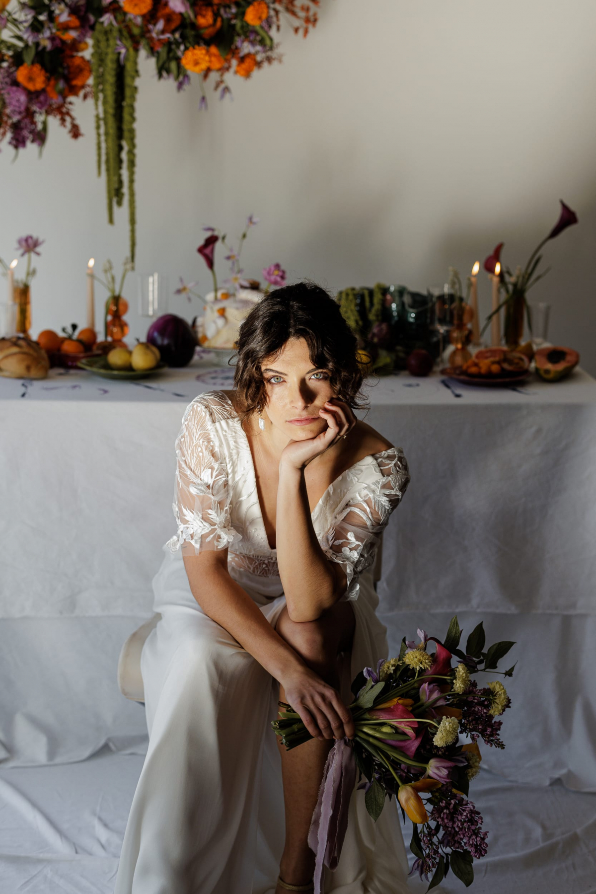 The editorial aims to provide brides-to-be with a vibrant and daring source of inspiration for their special day, challenging current wedding trends and immersing them in a dynamic universe that combines simplicity, joy, craftsmanship, and modernity. The underlying message emphasizes the importance of self-expression and encourages creative experimentation. Suggestions include incorporating dreamy hand-painted tablecloths, opting for an unconventional cake and vibrant flowers, embracing unique hair bun styles and bold makeup choices such as orange liner.