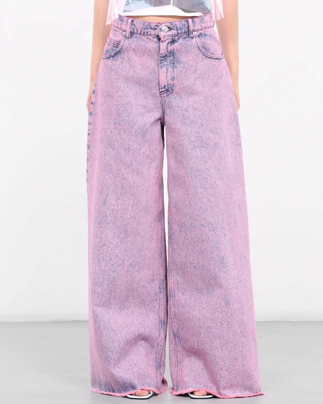 PH5 Tulip Denim Print Bra Top, $258, and Arbor Wavy Mini Skirt, $357
