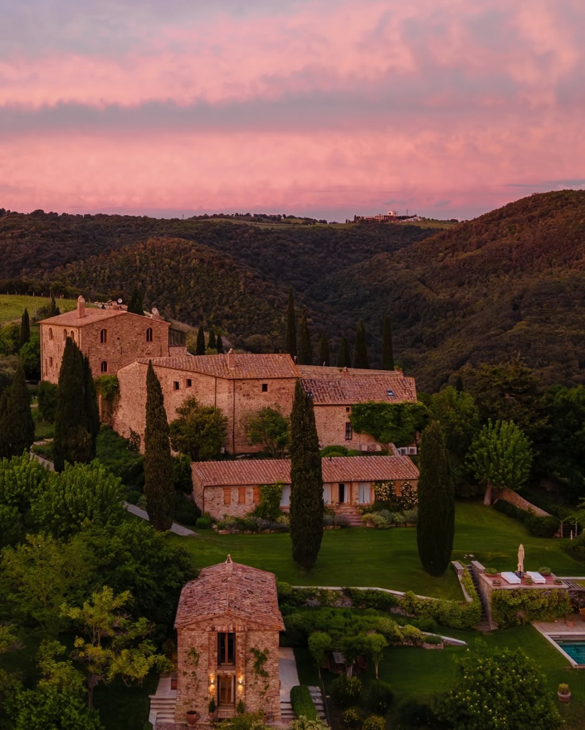 Tucked into 40 acres of vineyards, olive groves, and rolling farmland, Castello di Vicarello in Tuscany's Maremma is less a venue and more a world of its own. The medieval estate has been lovingly restored to preserve its historic character while layering in quiet luxury, from antique textures to garden-filled terraces overlooking the impressive Italian landscape. There’s an effortless intimacy here with every corner inviting you to stay a little longer.