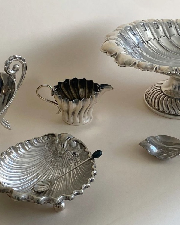 For a classic nod to vintage opulence, silver platters and dishes can be used to display hors d’oeuvres, desserts, or even floral arrangements for a captivataing touch. For an added layer of style, pair them with one-of-a-kind antique glassware or engraved silverware. They also work beautifully as part of a styled bar cart or dessert table.