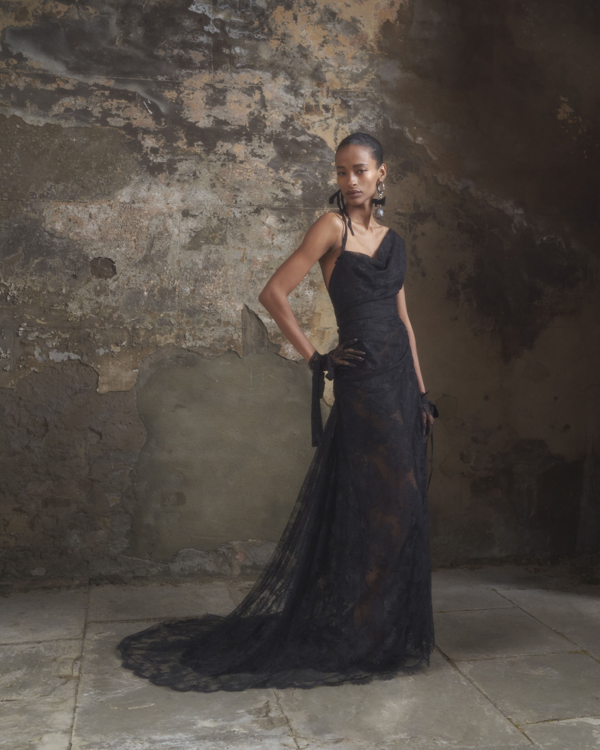 Every piece is a testament to masterful craftsmanship, crafted from classic French laces, sculptural taffetas, layers of soft tulle, and luxurious silk satins, completed with thoughtfully adorned details—pearls, bows, and intirguing antique-inspired portrait brooches. Staying true to the brand's rule-breaking spirit, the collection introduces unexpected touches of black, reminiscent of Queen Victoria’s mourning period for her beloved Prince Albert. A heartfelt ode to love: an honor the everlasting vow.
