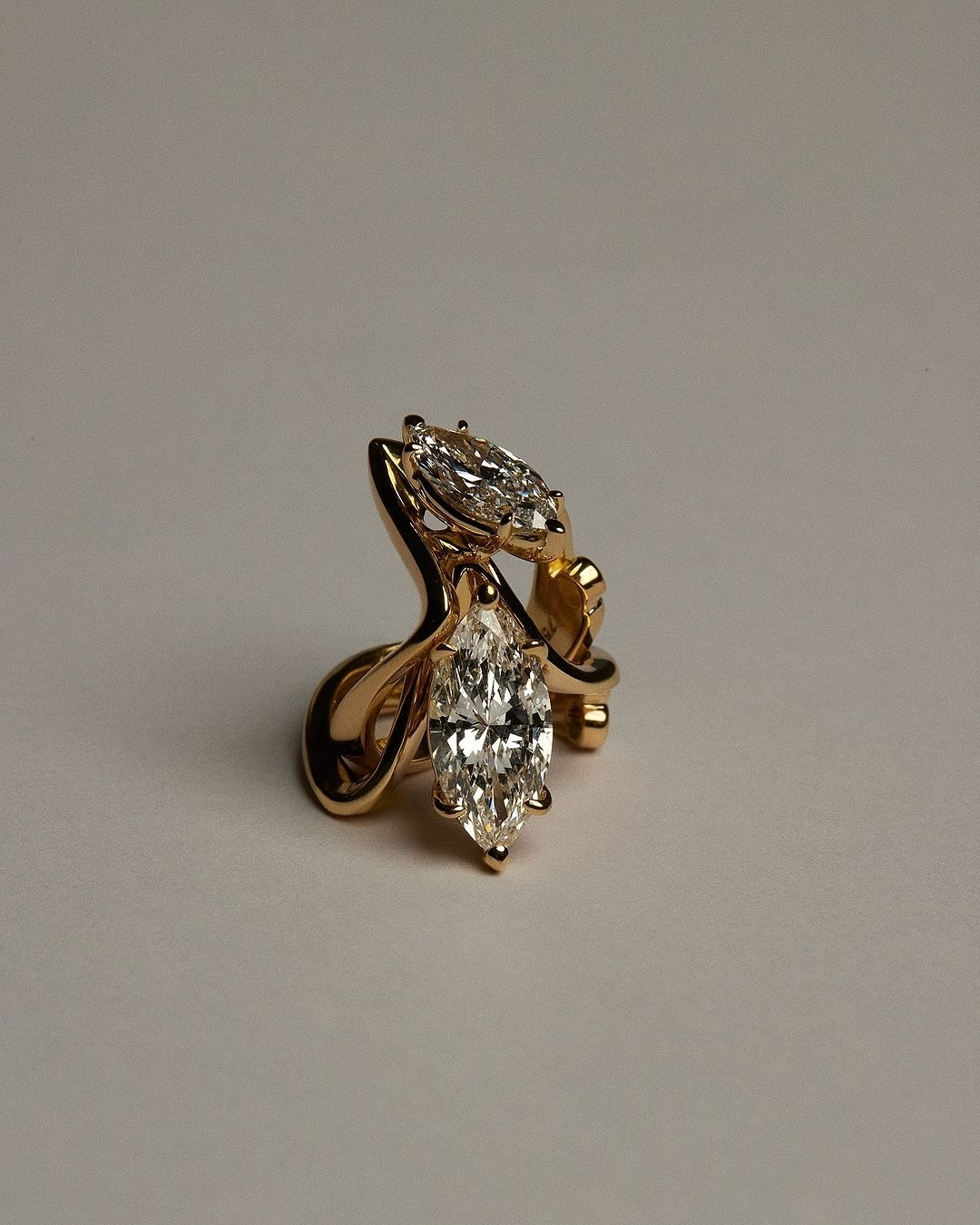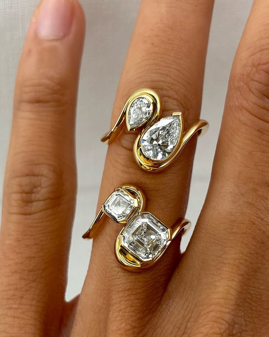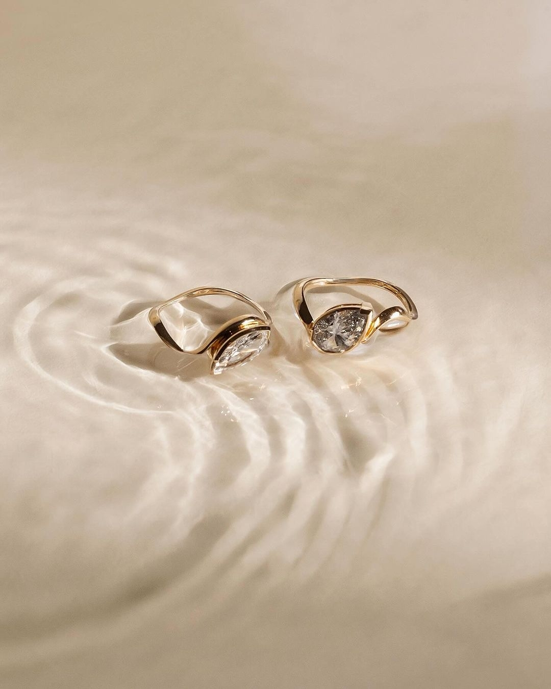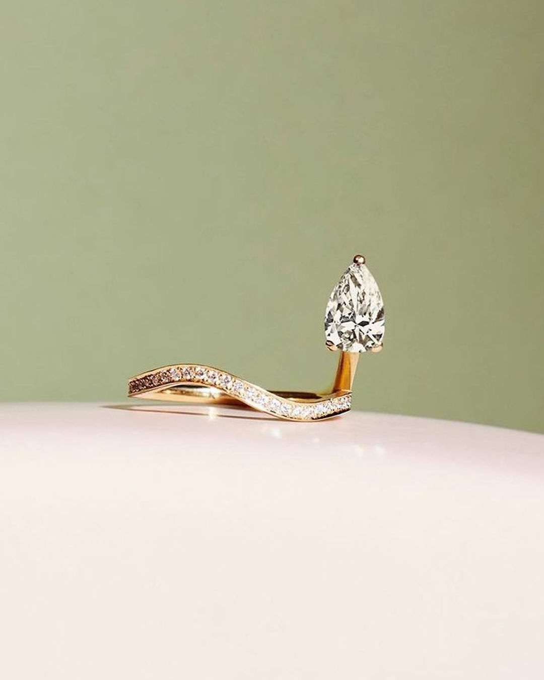 One of our personal favorite wedding ring trends lately is wave-like bands. Super versatile and ultra-modern, they blend effortlessly with other jewelry pieces, opening up endless possibilities for personalization and experimentation. Whether adorned with precious stones or kept simple, wavy rings add an artisanal touch, breathing sophistication and creativity for the uniquely fashionable bride.