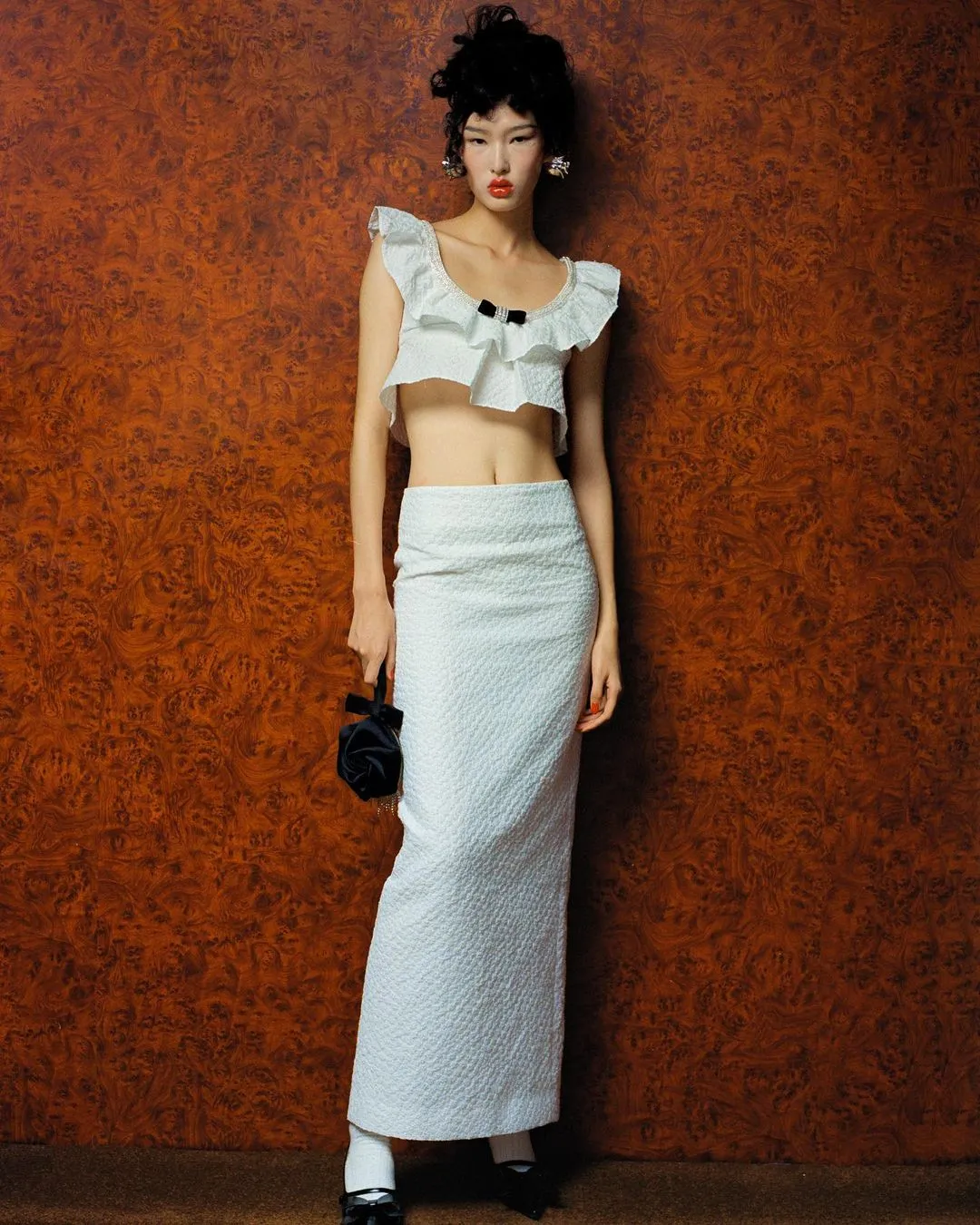 Magda Butrym Plisse Knit Tie Blouse, $741, and skirt, $666